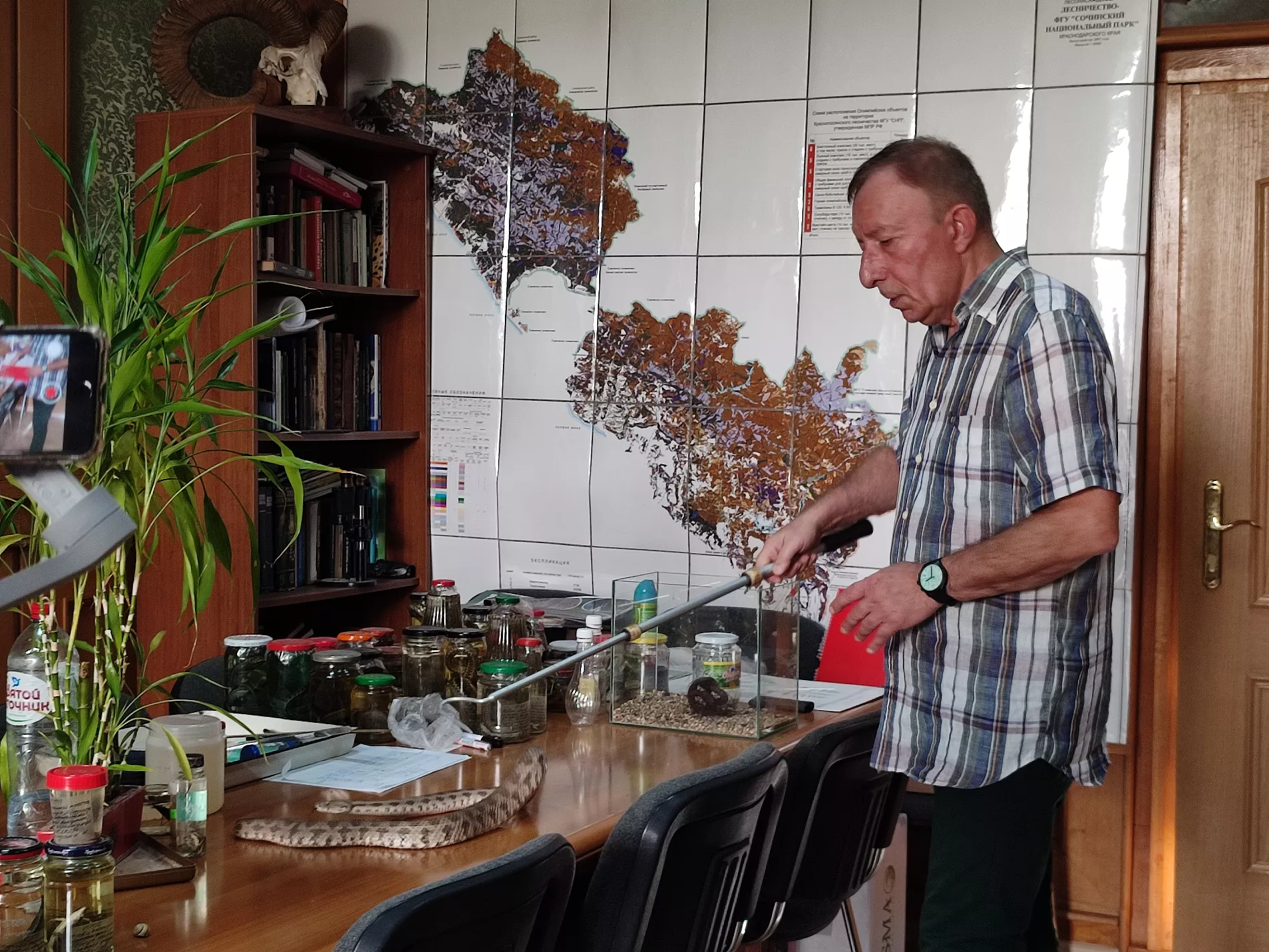 Позже жителям удалось связаться со специалистами Сочинского нацпарка. Замдиректора по научной работе, герпетолог Борис Туниев забрал змею в научный отдел. По его словам, ей оказалась половозрелая гюрза возрастом около трех лет. Ранее гадюка жила в террариуме. Однако она не лишена своих природных инстинктов.