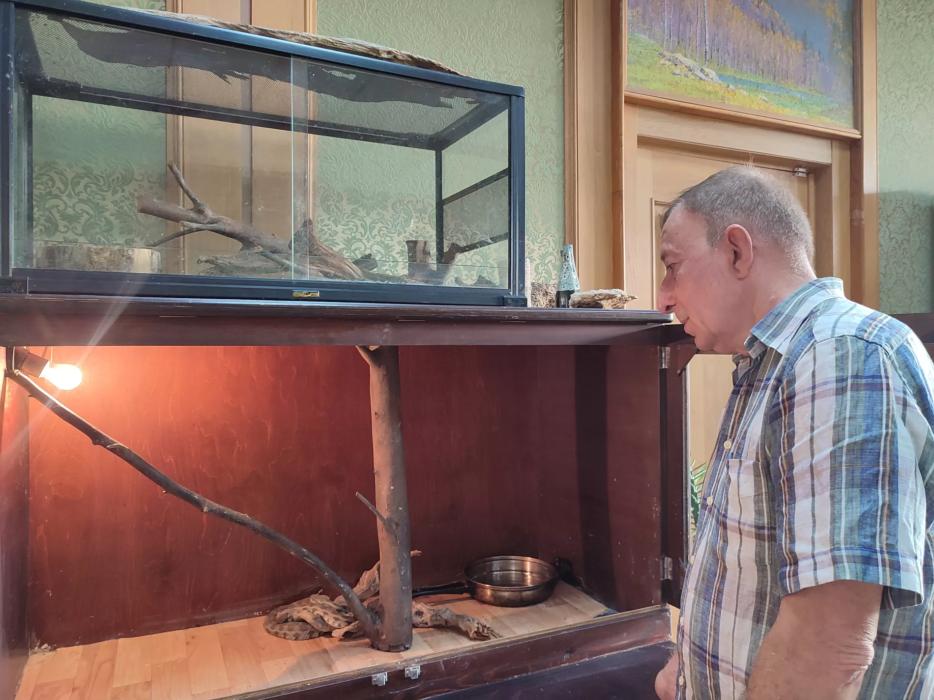 «Не случайно научное название гигантской гадюки — гробовая. Это отражает особенности яда этой змеи. Вид в дикой природе обитает в Передней Азии, Средней Азии, Армении, Грузии, Азербайджане. В России обитает в Дагестане. В связи с этим внесена в Красную книгу РФ. Гюрза, как и все змеи, нападают только в случае самозащиты. Но надо учитывать особенности животного — змеи достаточно плохо видят, и все они глухи. Распознать жертву или врага она может только с близкого расстояния. И вот тут может произойти укус, если не соблюдать меры осторожности», — рассказал Борис Туниев.