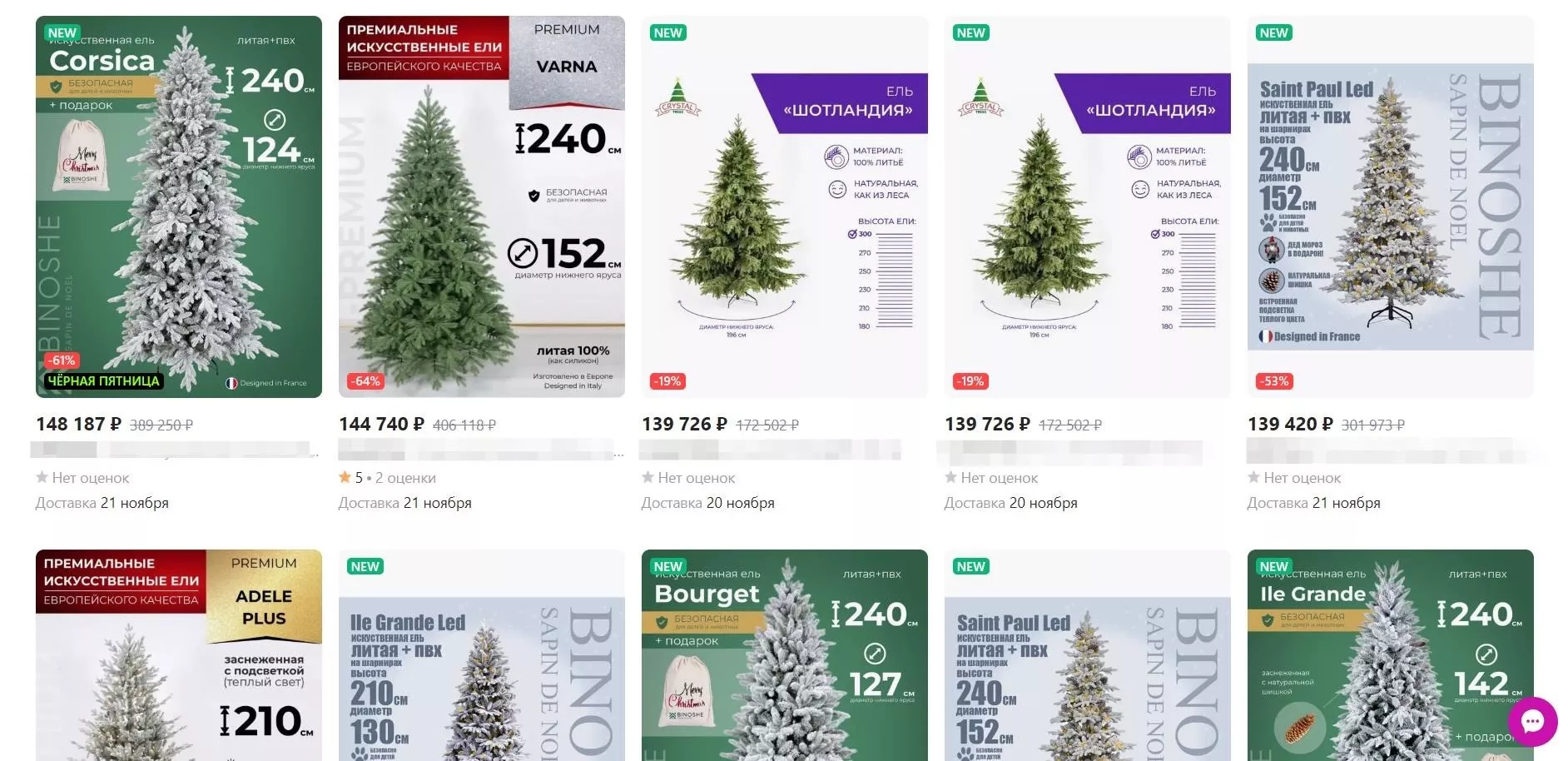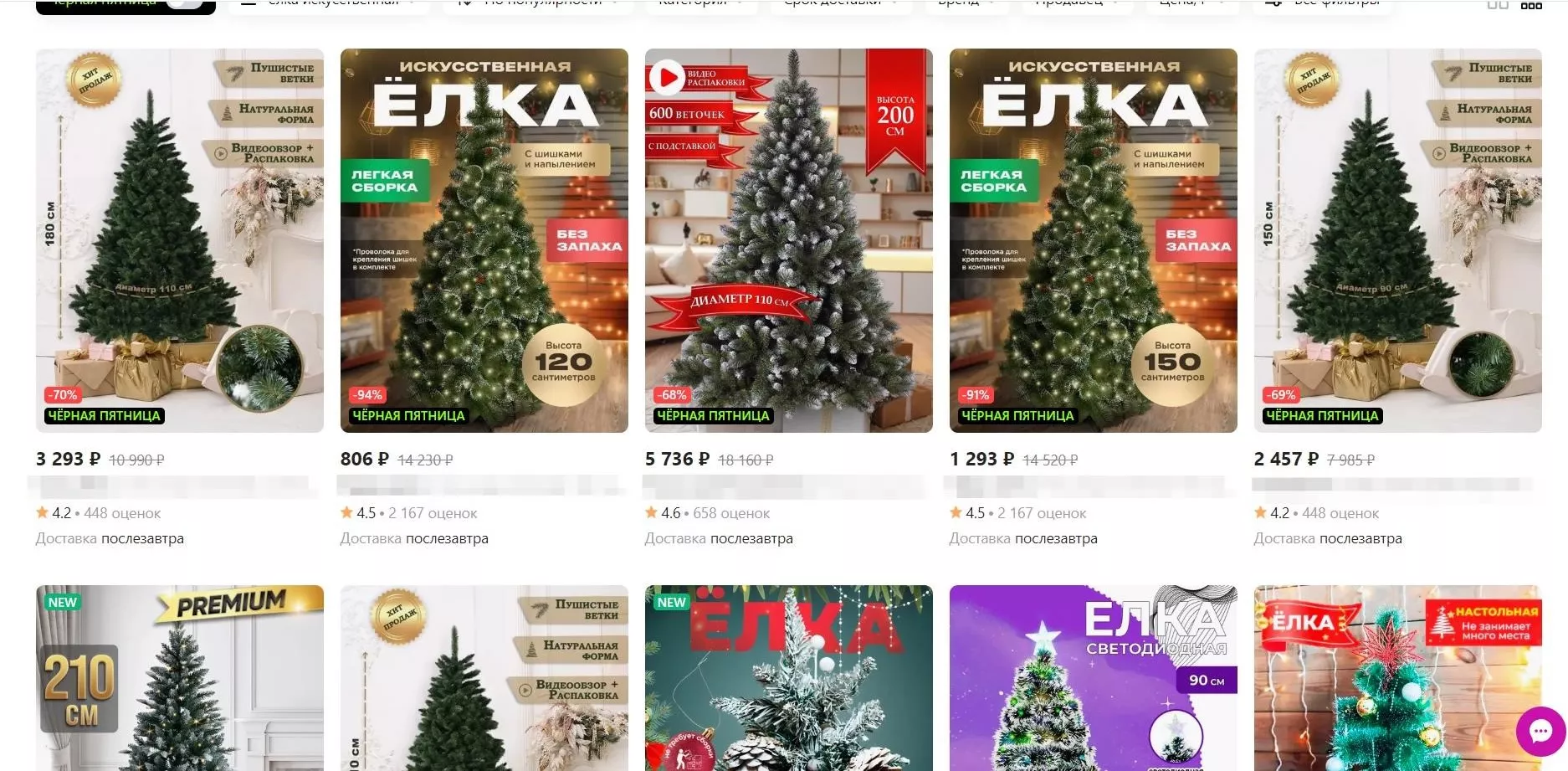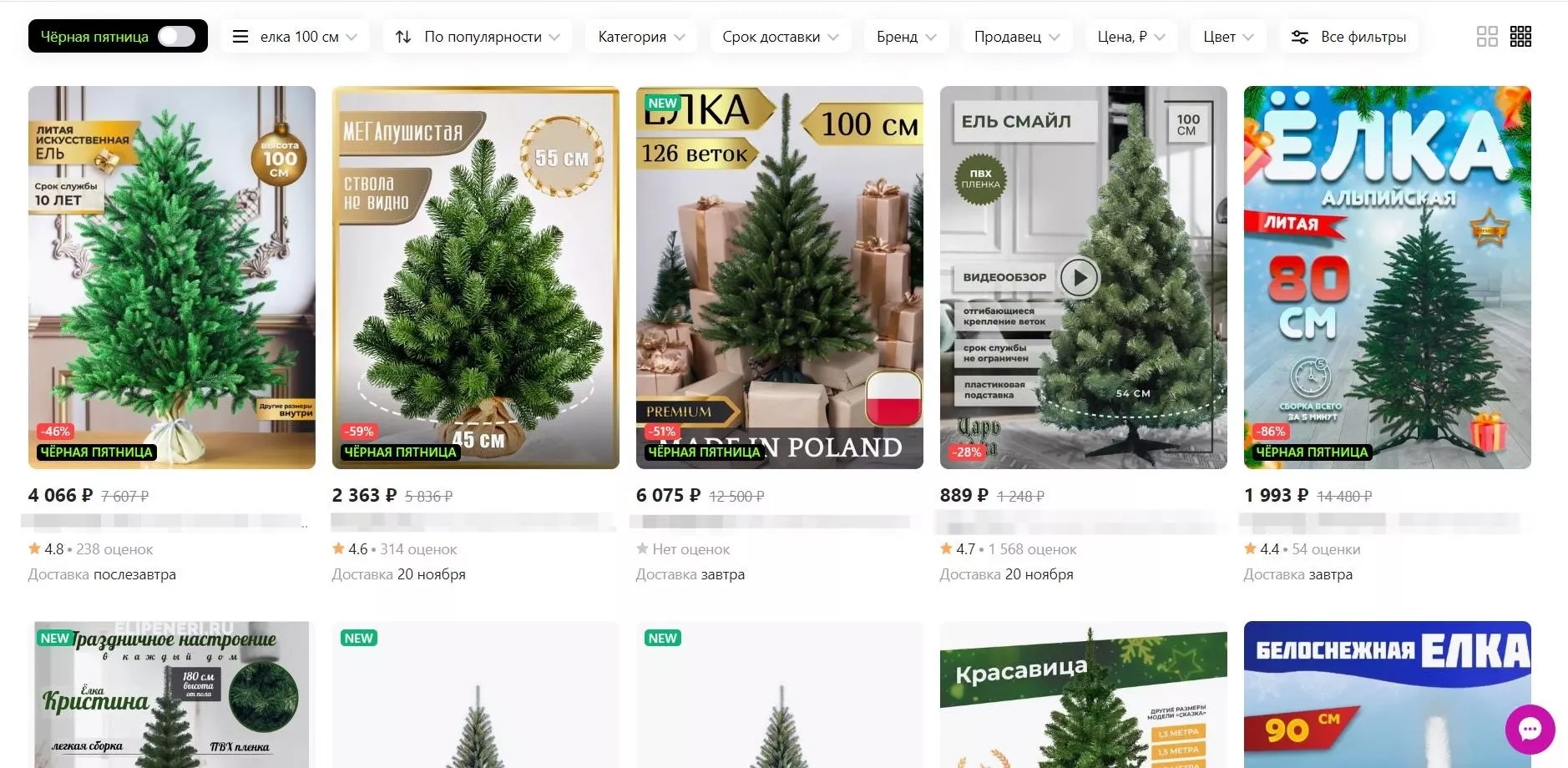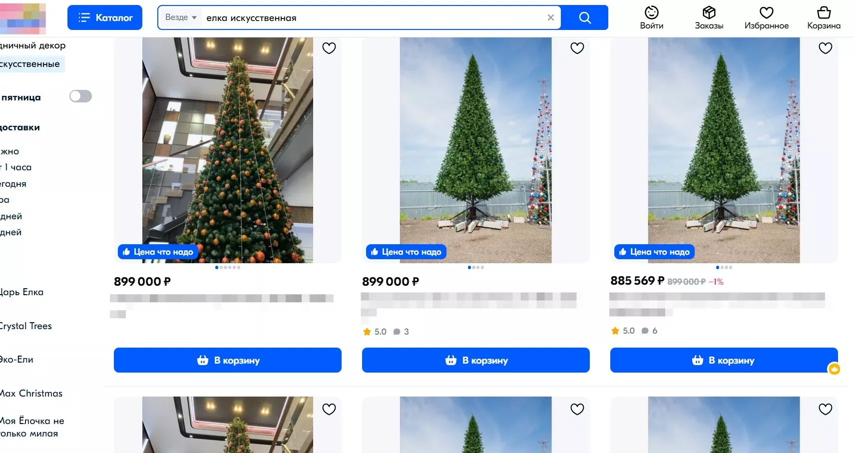 Юга.ру заглянули на сайты популярных отечественных маркетплейсов и выяснили, что за один метр искусственной елки можно заплатить, как 800 рублей, так и 150 тыс. рублей. На одном из маркетплейсов главное новогоднее украшение высотой 14-15 метров стоит почти 900 тыс. рублей. Вот актуальные предложения: