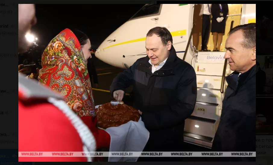 Белорусские СМИ публикуют фотографии, на которых в аэропорту Краснодара встречают премьер-министра Республики Беларусь Романа Головченко