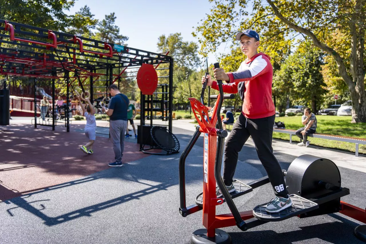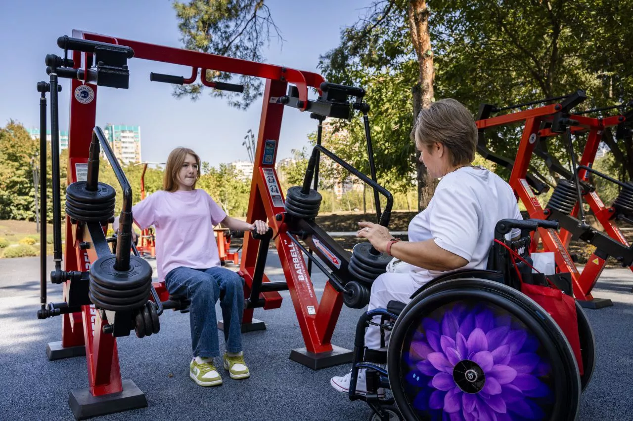 Спортивную зону спроектировали так, чтобы на ней могли заниматься и бесплатно проходить реабилитацию люди с ограниченными возможностями здоровья. Здесь установили универсальные тренажеры.