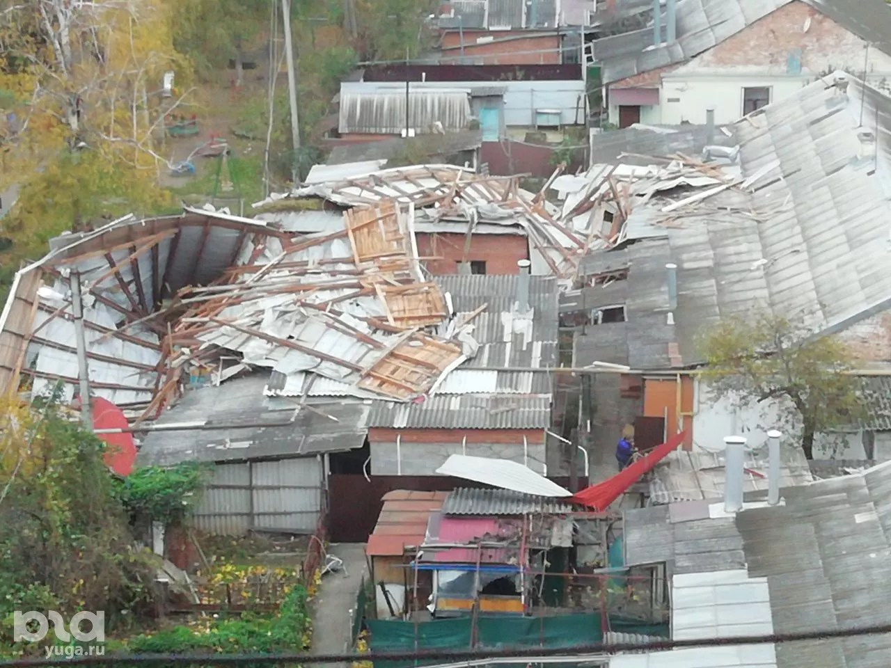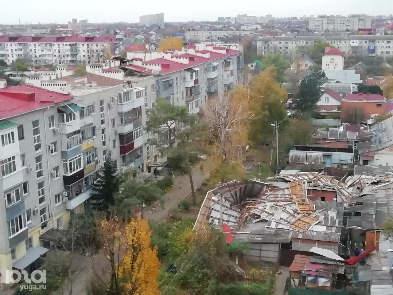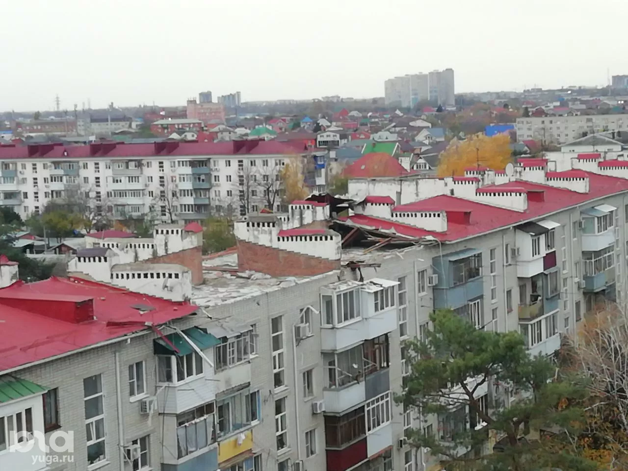 В Краснодаре из-за сильного ветра с крыши многоэтажки слетела кровля