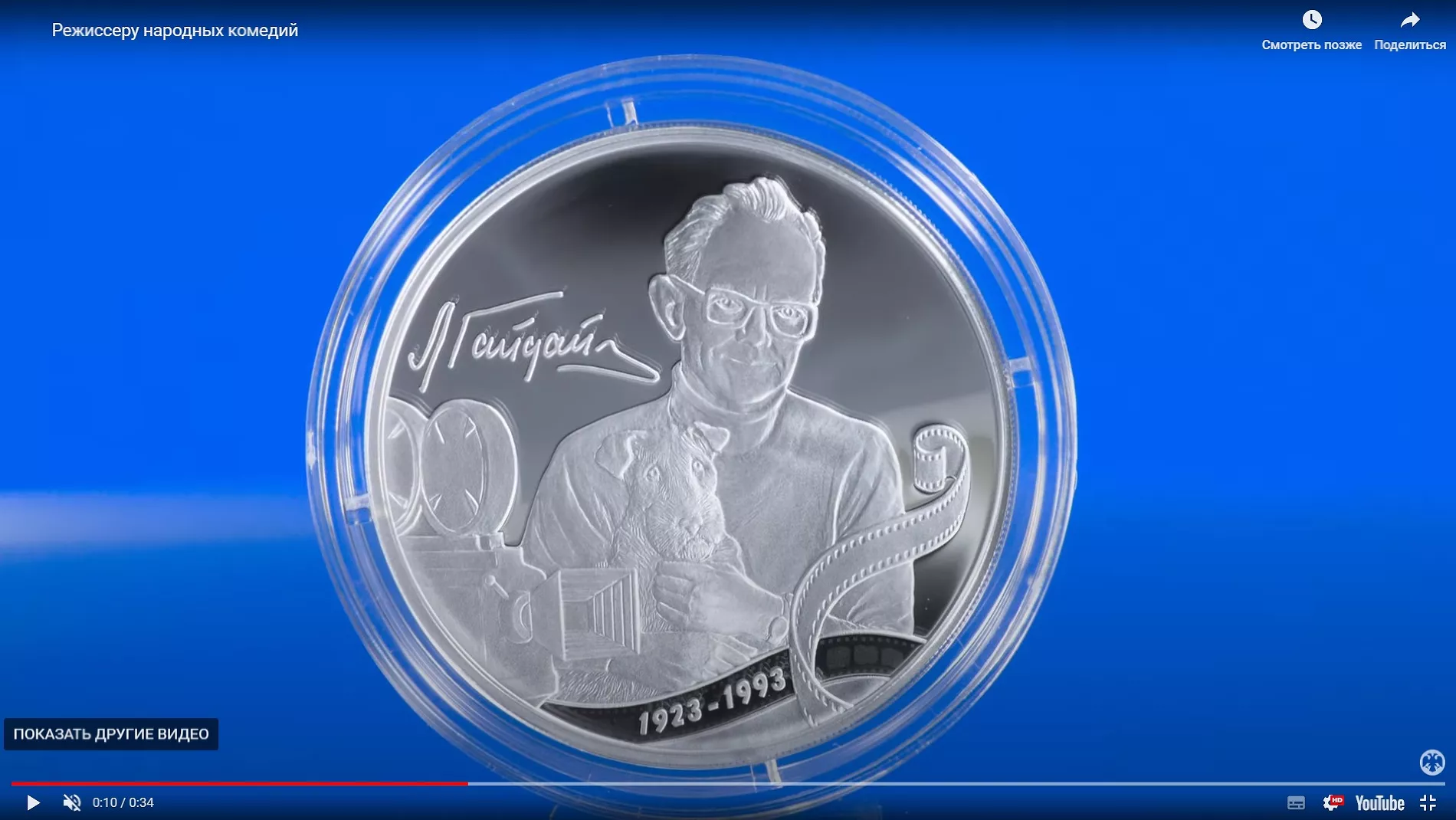 ЦБ 8 декабря выпустил в обращение памятную серебряную монету в номиналом 3 рубля в честь Леонида Гайдая