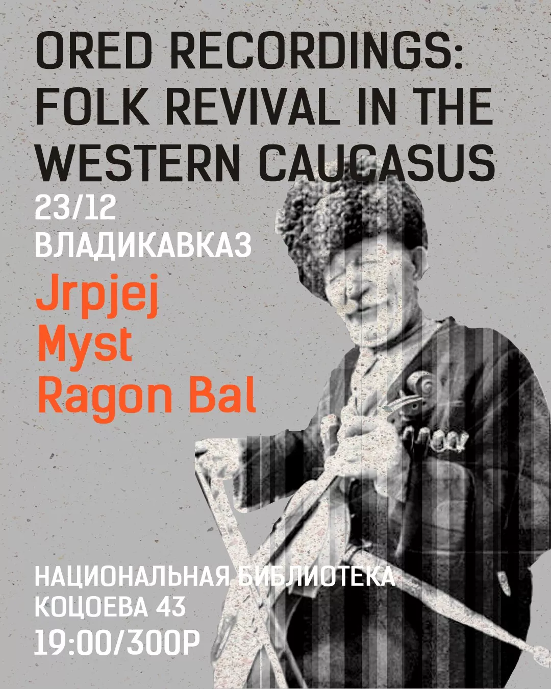 Лейбл Ored Recordings анонсировал тур Folk Revival in the Western Caucasus: пять концертов пяти музыкантов в столицах Карачаево-Черкессии, Адыгеи, Кабардино-Балкарии и Северной Осетии — Алании.