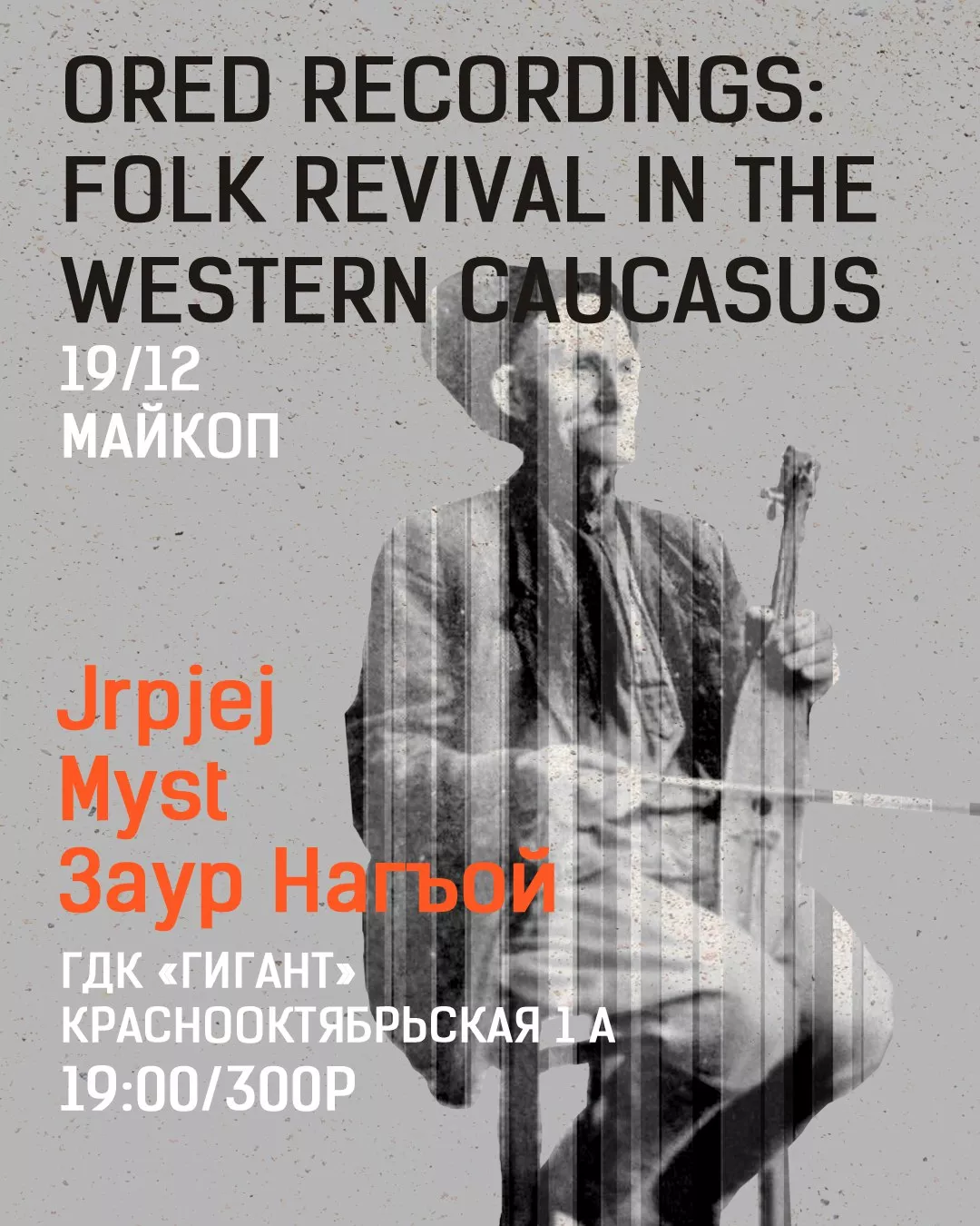 С 14 по 23 декабря в Черкесске, Майкопе, Нальчике и Владикавказе выступят музыканты фолк-лейбла Ored Recordings (18+)