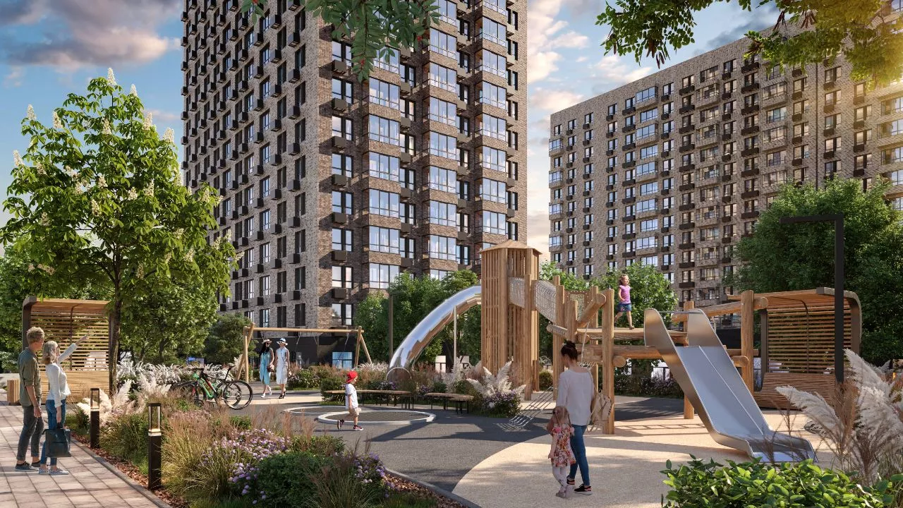 Первые пять домов высотой 15-24 этажа включают 1542 квартиры с различными планировками — от студий до четырехкомнатных квартир, в том числе с готовым ремонтом.