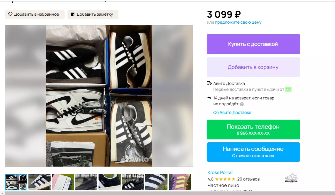 Например, житель сочинской Хосты предлагает покупателям новую шапку «как в «Слове пацана» за 2500 рублей. А в Адлерском районе можно приобрести кроссовки за 3099 рублей.