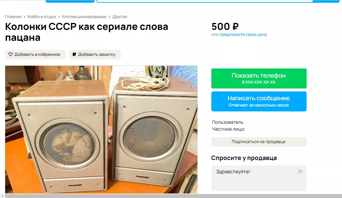 «Не знаю, работают или нет. Если не работают, то можно вставить новые колонки в старые короба и будут сильные колонки из 90-х. Мало ли кому нужно. Колонки, как из сериала «Слова пацана», — говорится в объявлении.