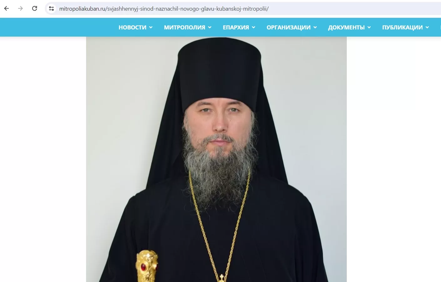 На сайте Кубанской митрополии появилась информация о назначении нового главы: