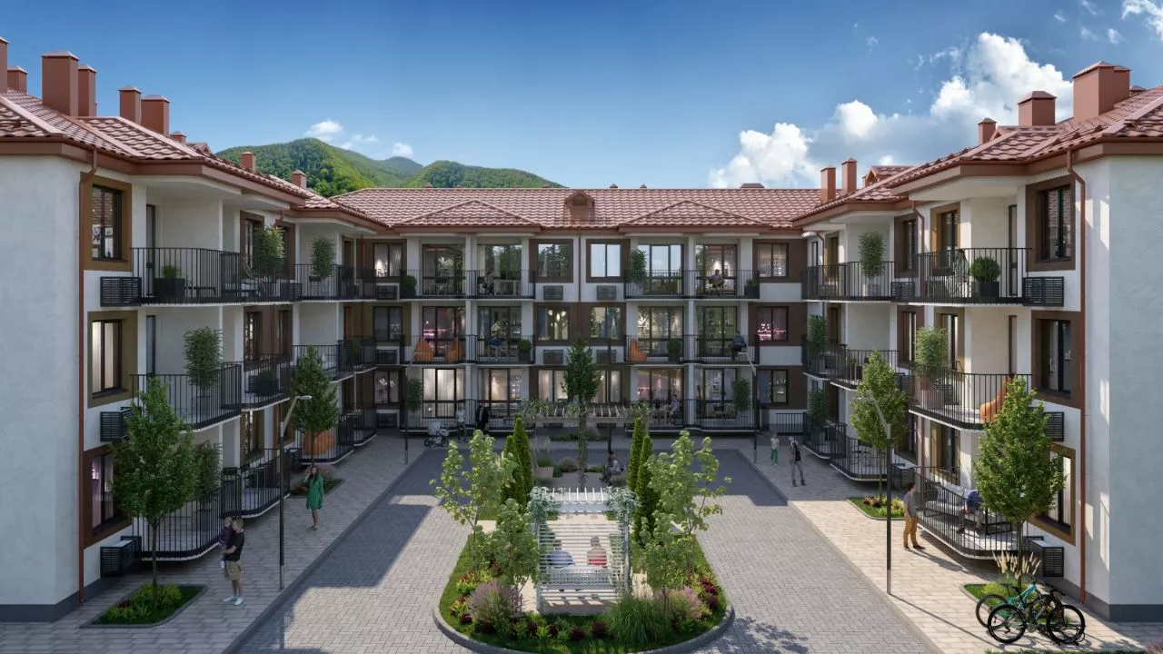 Широкие лоджии с оригинальными ограждениями и видом на горы, панорамное остекление, светлое цветовое оформление — архитектурой «Монако» напоминает средиземноморские виллы.