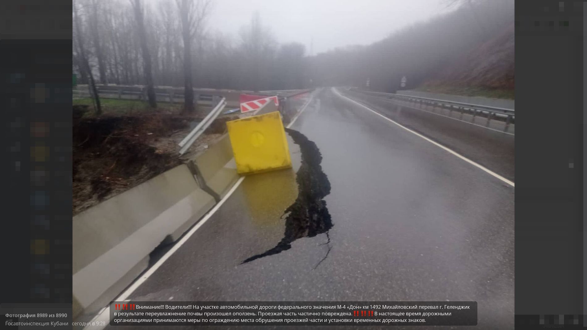 В официальном телеграм-канале Госавтоинспекции Краснодарского края 4 января сообщили об оползне на трассе под Геленджиком. Речь идет об участке М-4 «Дон» км 1492 в районе села Михайловский перевал.