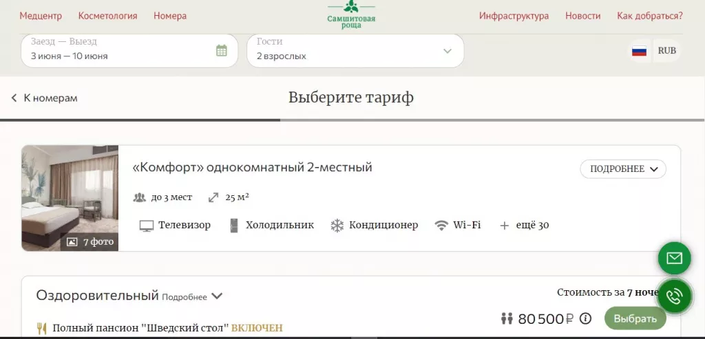 © Скриншот с сайта https://samshitovaya-roshcha.com/booking/?date=2024-06-26&nights=12&adults=2&children=&children-age=