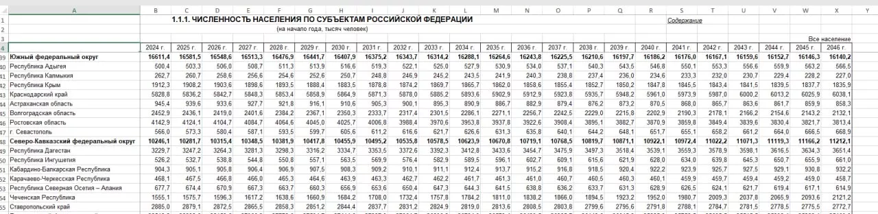 По данным ведомства, сейчас в ЮФО всего проживают более 16 млн человек. К началу 2024 года численность населения в Адыгее составила 501 тыс. человек, в Крыму — 1,9 млн человек, а в Ростовской области — 4,1 млн человек.