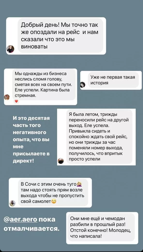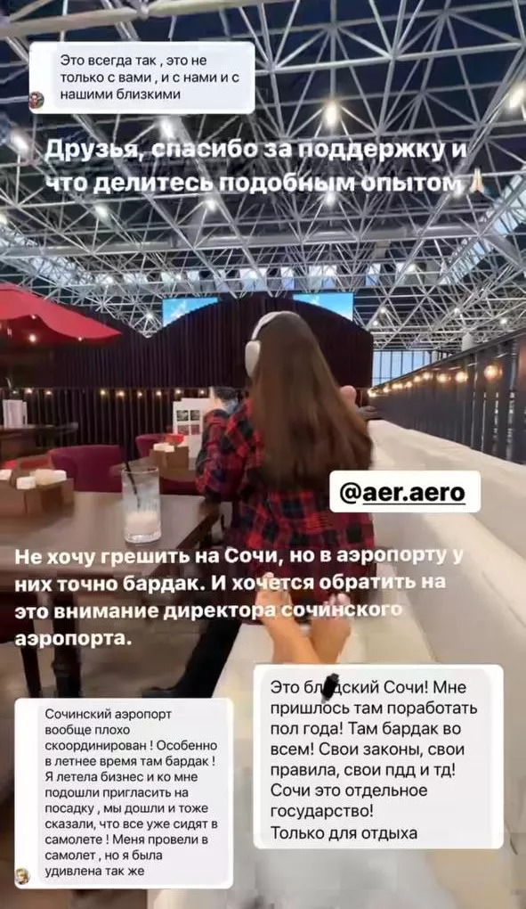 Подписчики телеведущей также поделились негативными впечатлениями о работе сочинской воздушной гавани: