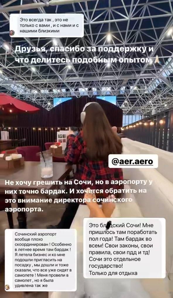 Подписчики телеведущей также поделились негативными впечатлениями о работе сочинской воздушной гавани: