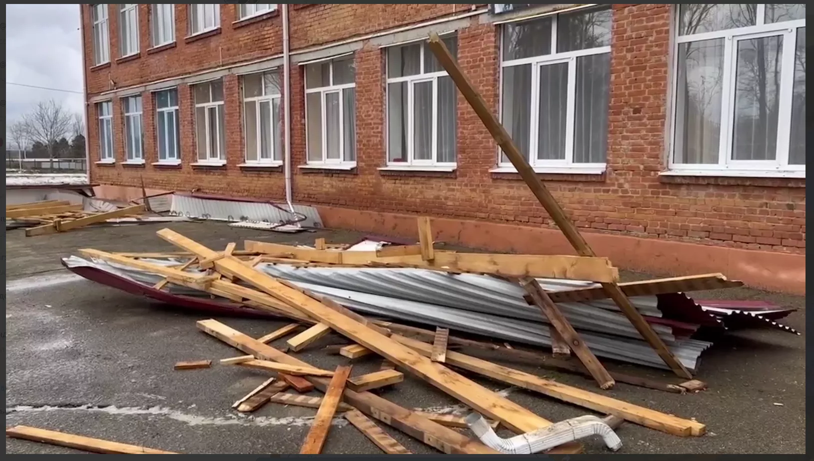 В Краснодарском крае ветер сорвал кровлю с крыши школы. Рассказываем об обстановке в регионе