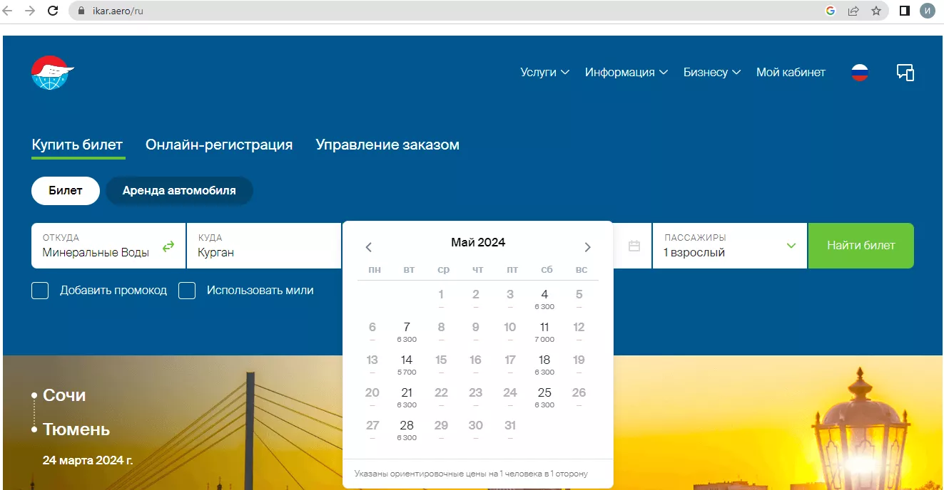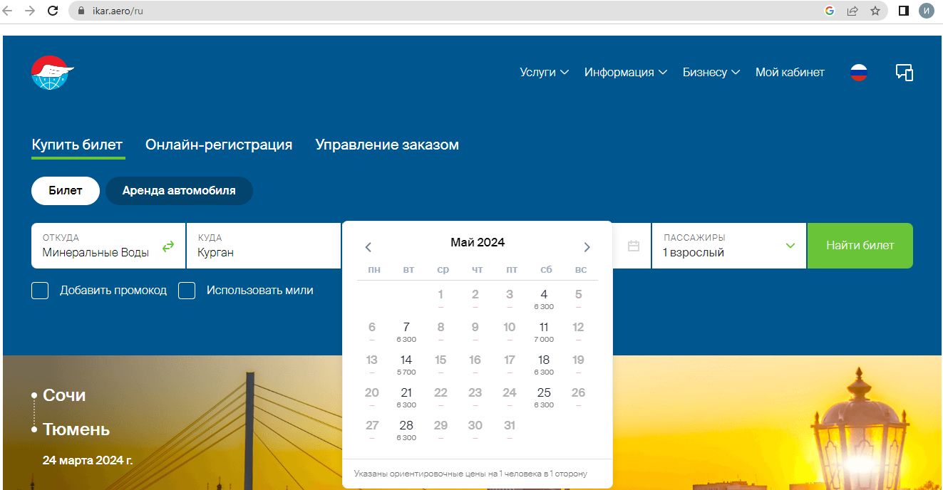 На сайте авиакомпании «Икар» уже есть расписание рейсов. Стоимость билетов начинается от 6 тыс. 300 рублей.