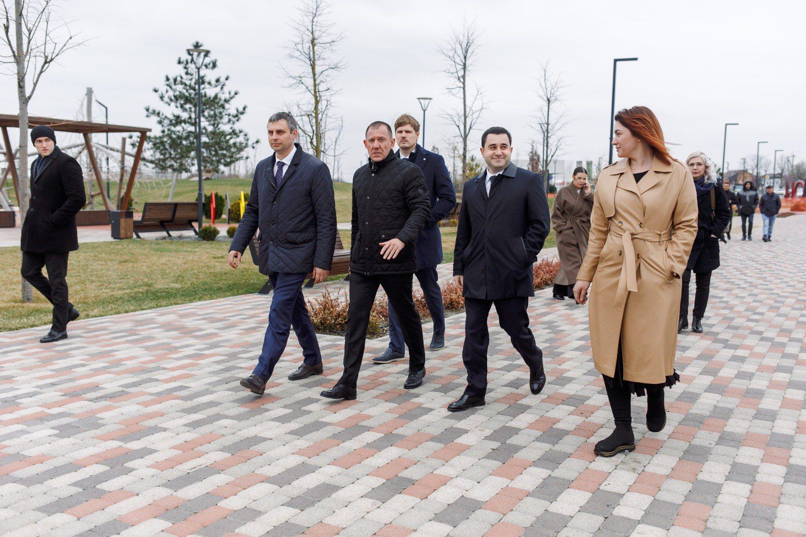 Экскурсию провели директор ГК ТОЧНО Анастасия Маслеха и первый заместитель председателя совета директоров ГК ТОЧНО Станислав Николенко. Гостей встретили в отделе продаж, провели по благоустроенному парку площадью 9 га, показали работающие школу и детские сады, храм, воркаут-зоны, игровые пространства, площадку для выгула домашних питомцев, скейт-парк и современные арт-объекты.