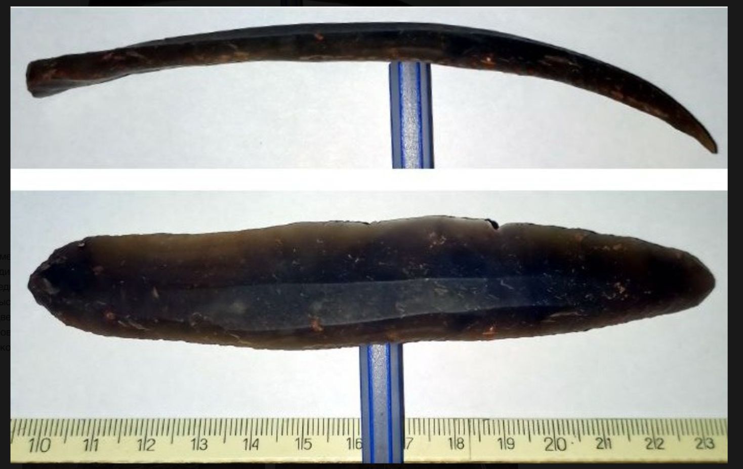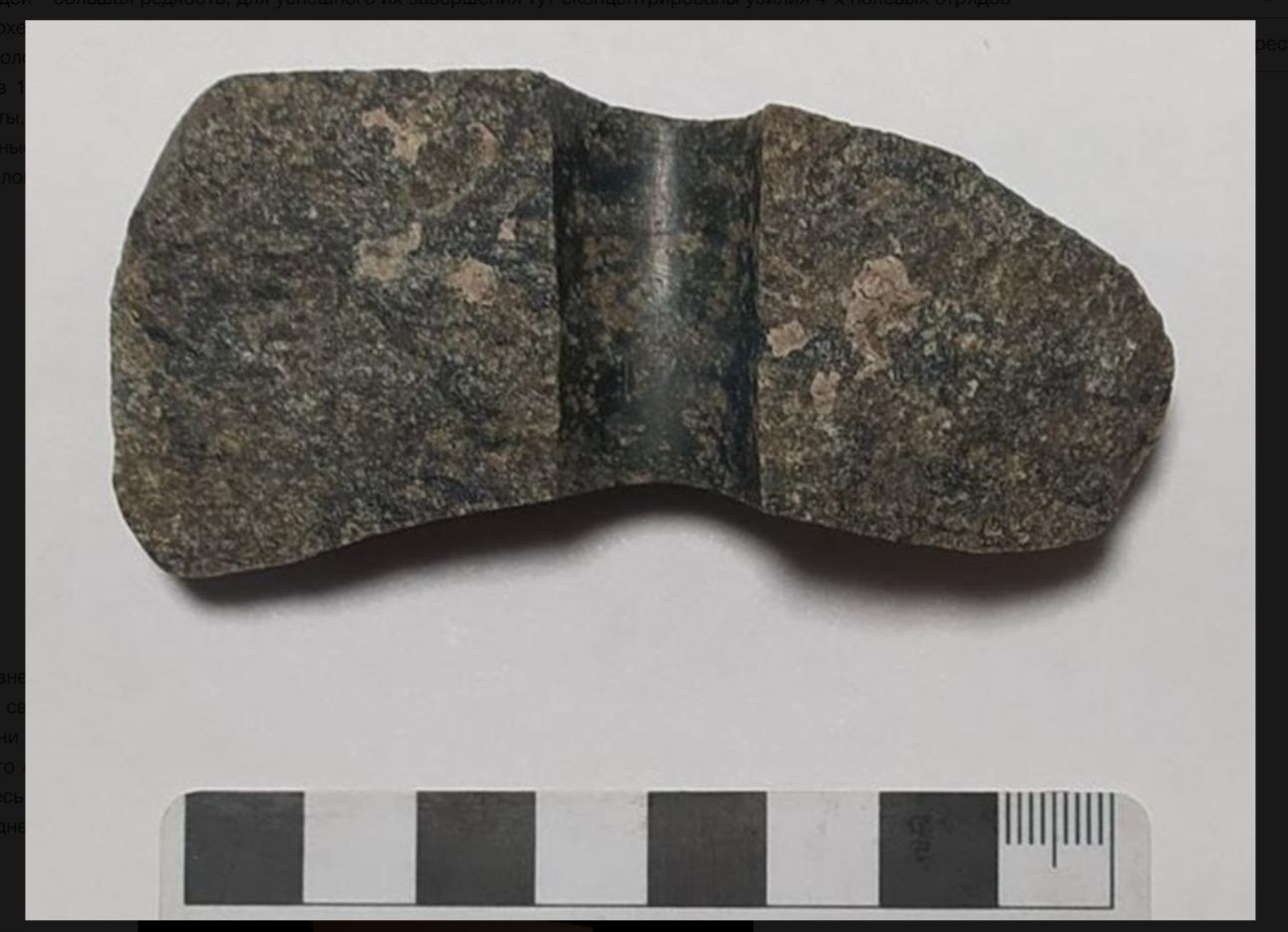 Расколотый сверлёный каменный топор © Скриншот с сайта института археологии РАН archaeolog.ru -