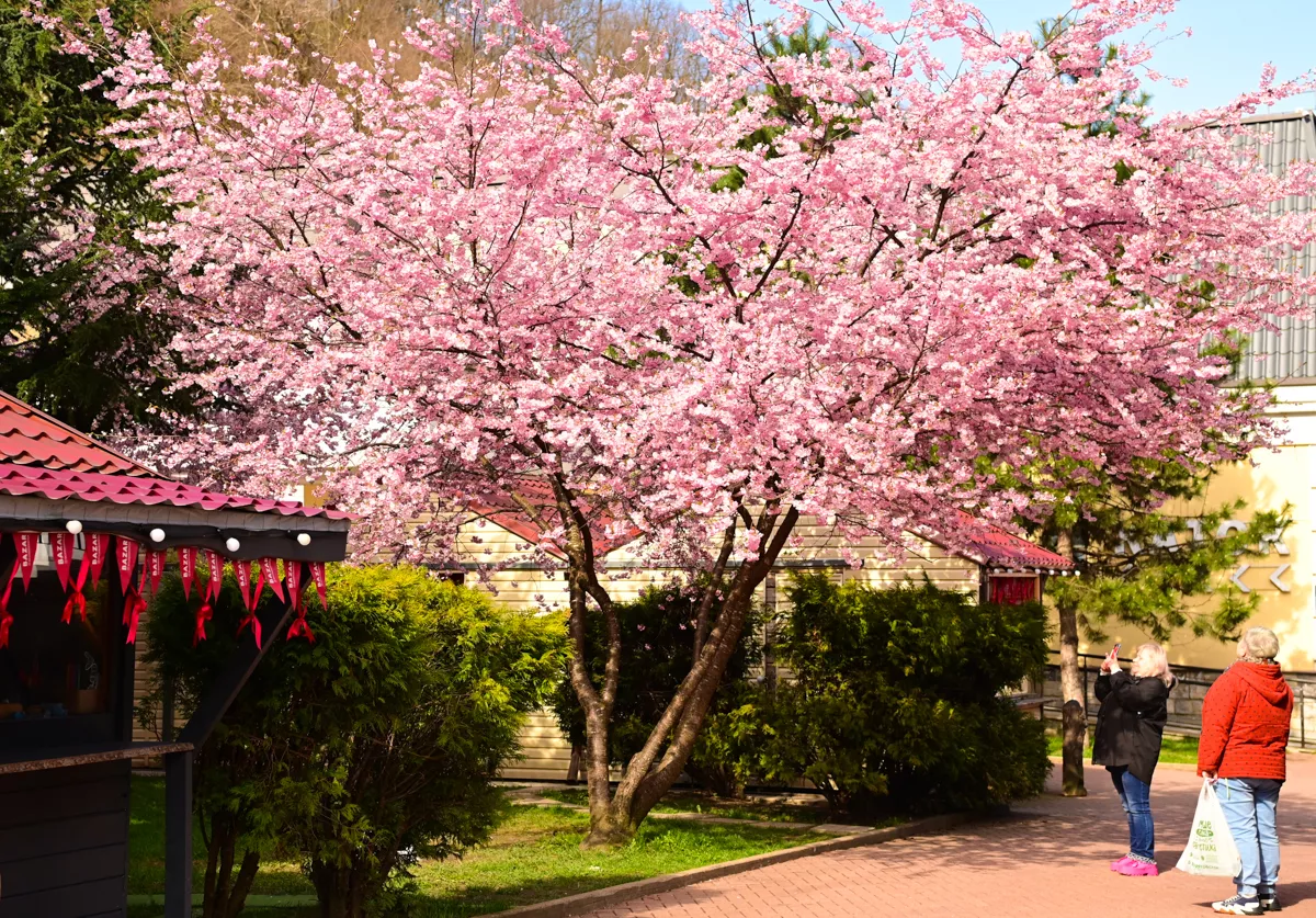 «Несмотря на то, что сакура дерево не аборигенное — для наших мест характерны дубы, буки, грабы, пихты — она очень хорошо адаптировалась к местному климату. Спокойно переносит снежные зимы, может выдерживать даже морозы до минус 20 °С. В этом году сакура расцвела на две недели раньше, чем в прошлом. Еще вчера деревья покрывали нежные бутоны, но буквально два теплых, солнечных дня — и они распустились, — объясняет Анна Мурашова.