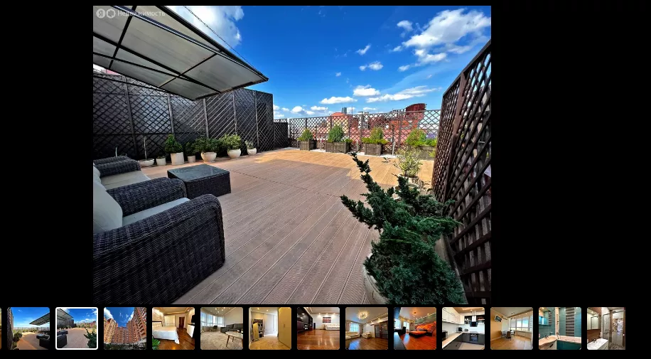 Двухуровневая квартира с кожаной мебелью, бытовой техникой и просторной террасой, с которой можно любоваться городскими пейзажами. Жилье включает четыре изолированных комнаты, кухню-гостиную, просторный холл, гардеробную с прачечной, три санузла, два застеклённых балкона. Цена по состоянию на 4 апреля — 31 млн 900 тыс. рублей.
