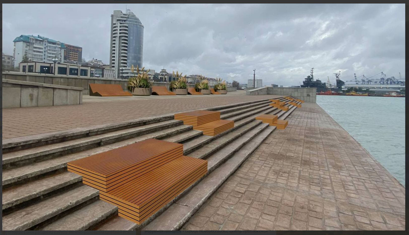 На площади установят новые скамейки, шезлонги, вазоны, урны, обустроят места для отдыха.