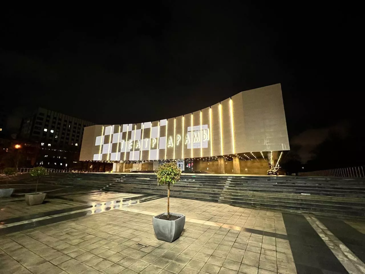 Работа длилась 150 дней. Как сообщают в театре, на фасаде здания установили больше 500 линейных и точечных светильников.
