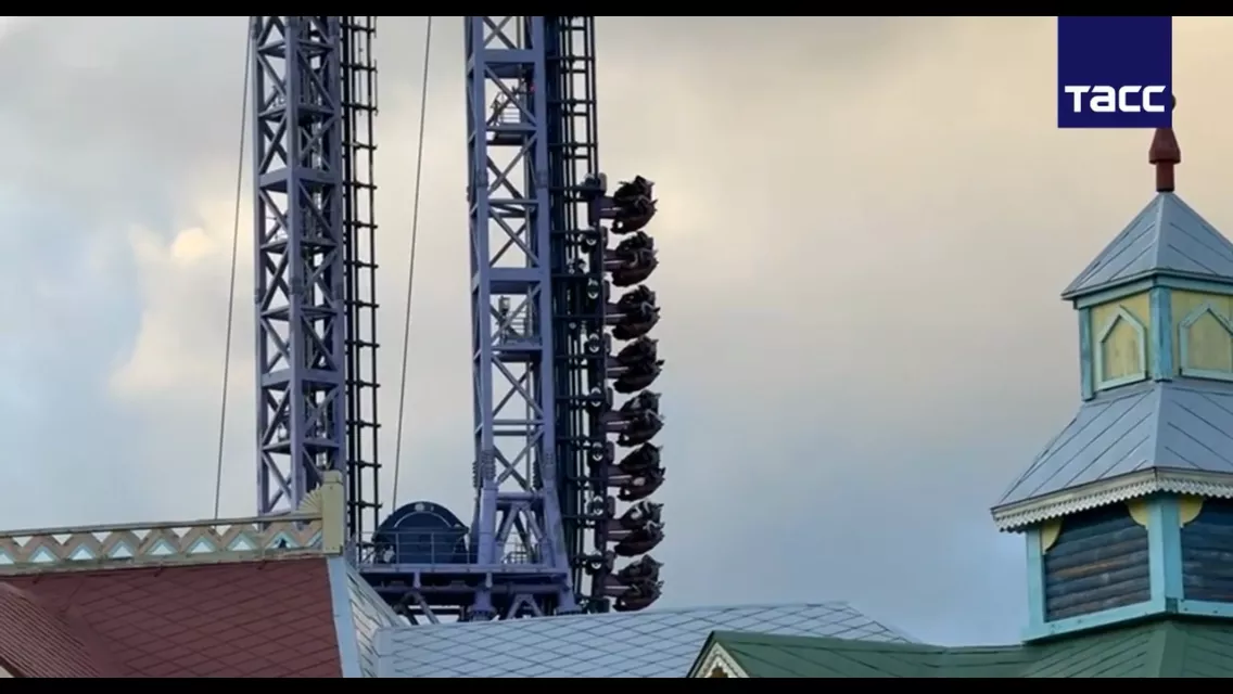 Справка. «Квантовый скачок» — экстремальная горка, длина трассы составляет 360 метров, а высота башен — 60 метров. На скорости 100 км в час пассажиры состава проходят мертвую петлю, поднимаются на 60-метровую вышку и затем повторяют весь путь в обратном направлении спиной вперед.