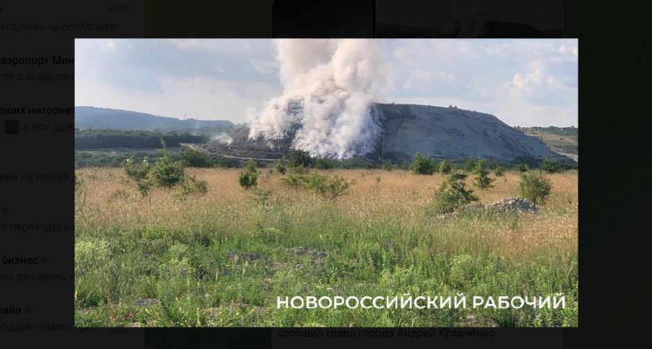 В Новороссийске с 9 июня тушат пожар на мусорном полигоне на горе Щелба
