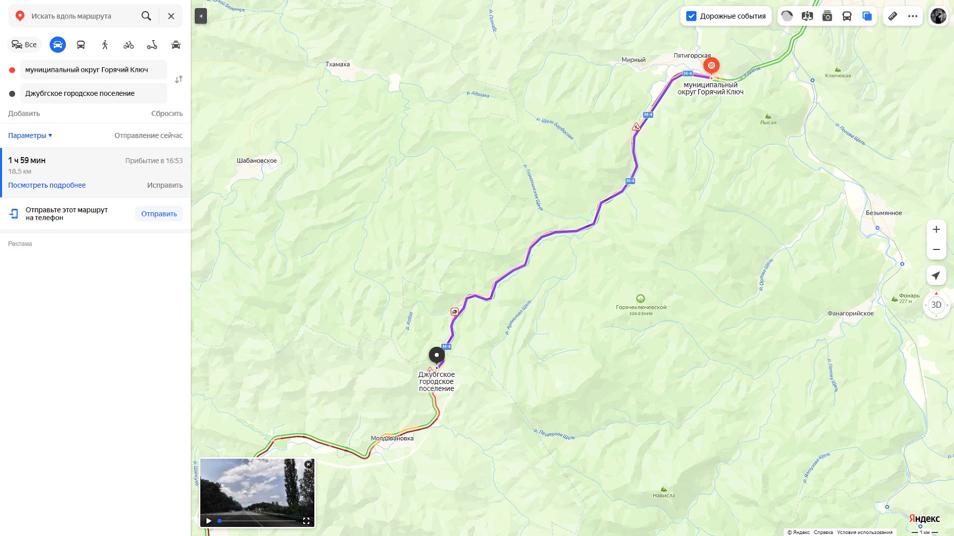 По данным «Яндекс.Карты», 20 июня, в четверг, на трассе М-4 «Дон» в сторону Черного моря после Горячего Ключа образовалась 18-километровая пробка — с 1395-го по 1413-й км. На преодоление расстояния от Пятигорской до Молдовановки у водителей уйдет почти два часа.
