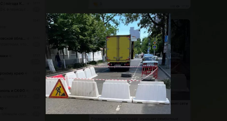 Краснодарский водоканал начал ремонт трубопровода на улице Гимназической. Там до 2 августа ограничат движение транспорта