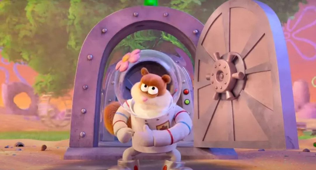 Кадр из трейлера к мультфильму «Спасти Бикини-Боттом: Фильм Сэнди Чикс» © Скриншот видео с YouTube-канала Kinoman, www.youtube.com/channel/UC6A-Z0jDKemh9-CwGbj5yog