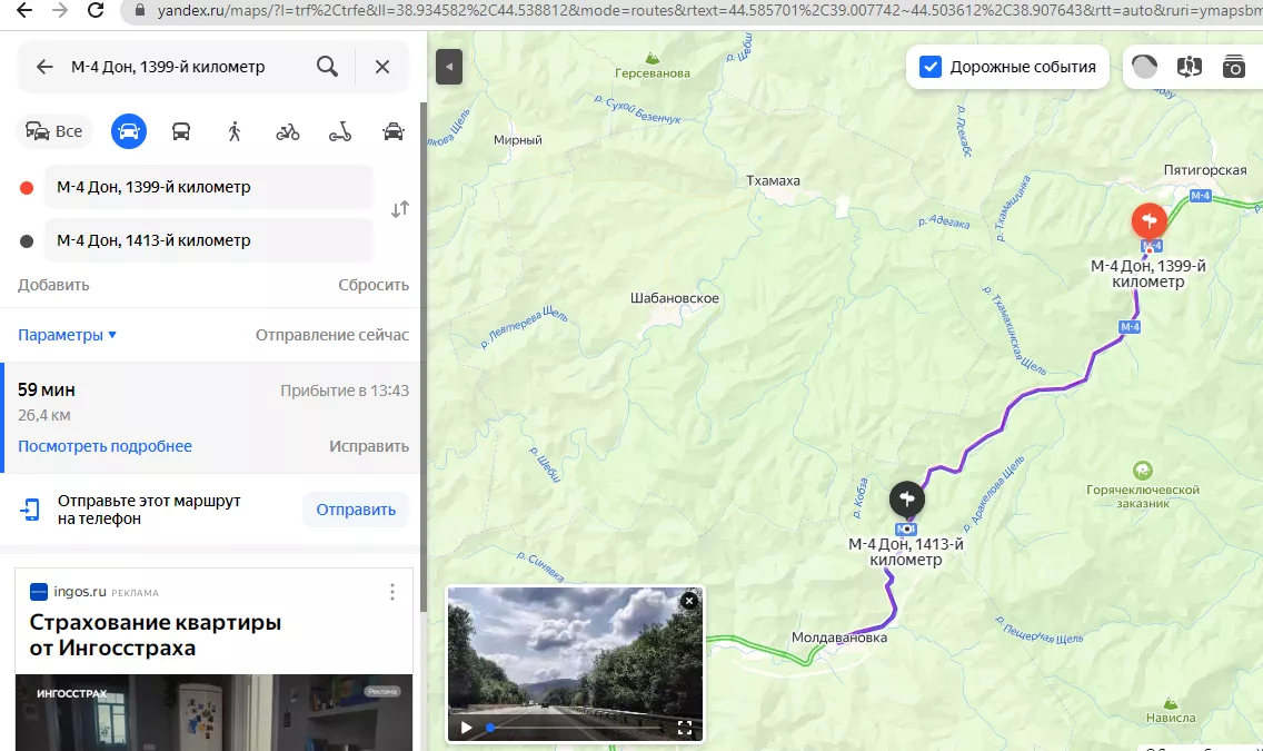 На преодоление расстояния от станицы Пятигорской почти до села Молдовановка, согласно сервису «Яндекс Карты», у водителей уйдет около 60 минут.