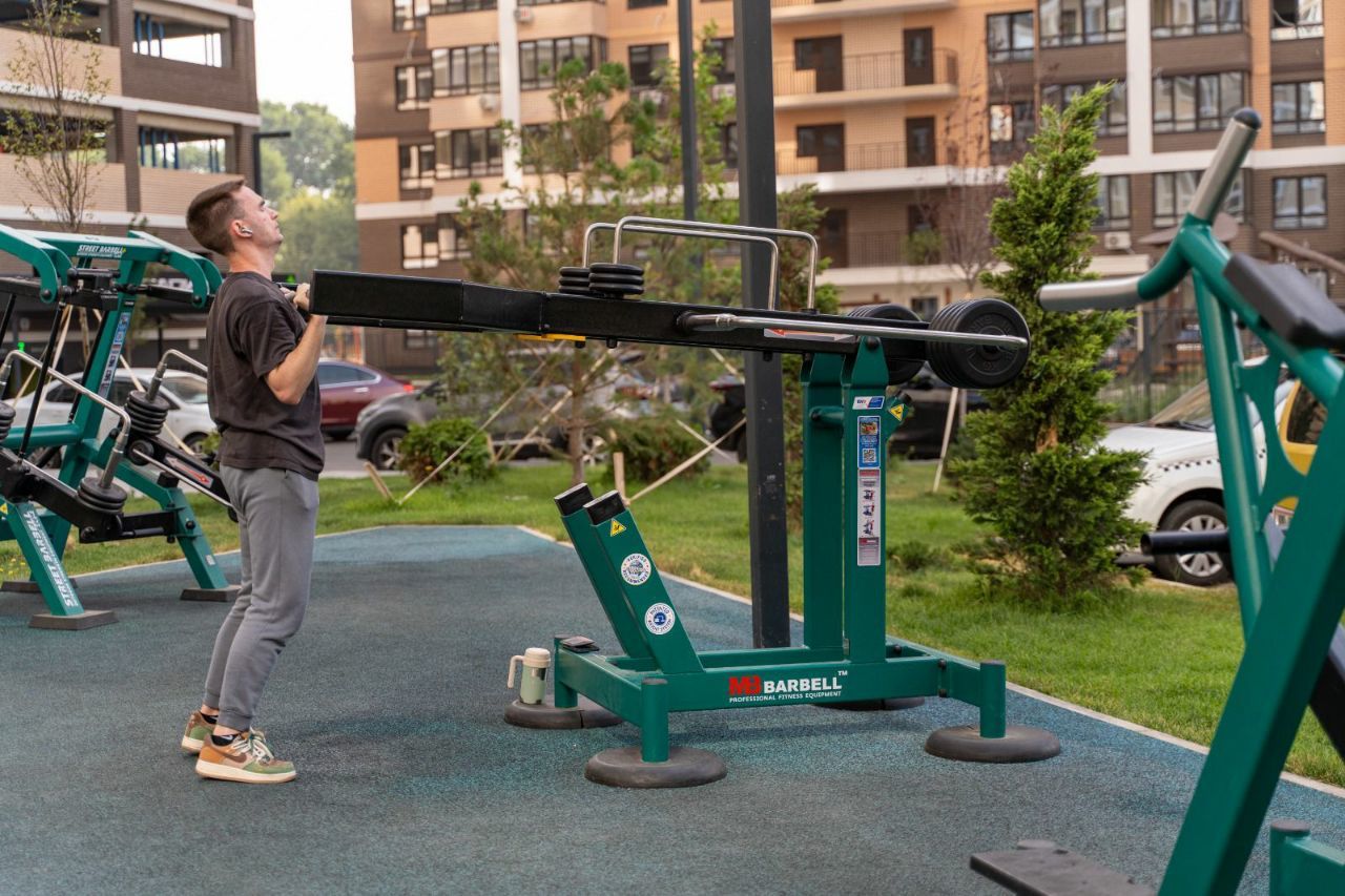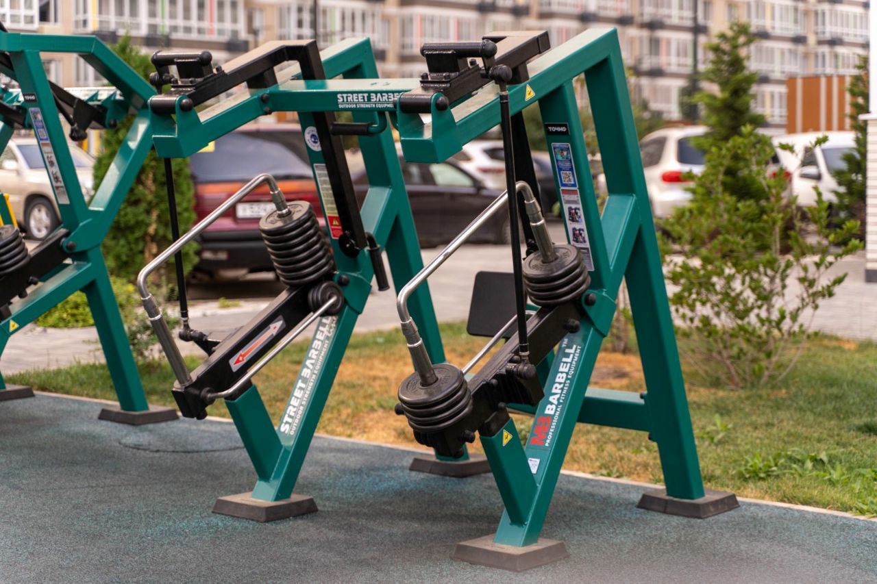 На площадке установили высокопрочные универсальные тренажеры российского производства — ими смогут пользоваться все жители, в том числе с ограниченными возможностями здоровья. В тренажерах (как комплексных, так и на конкретные группы мышц) можно изменять нагрузку. От травм поситетелей защитит резиновое покрытие толщиной 3 см.