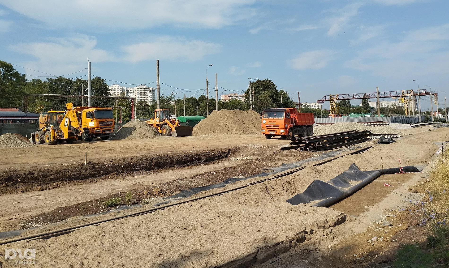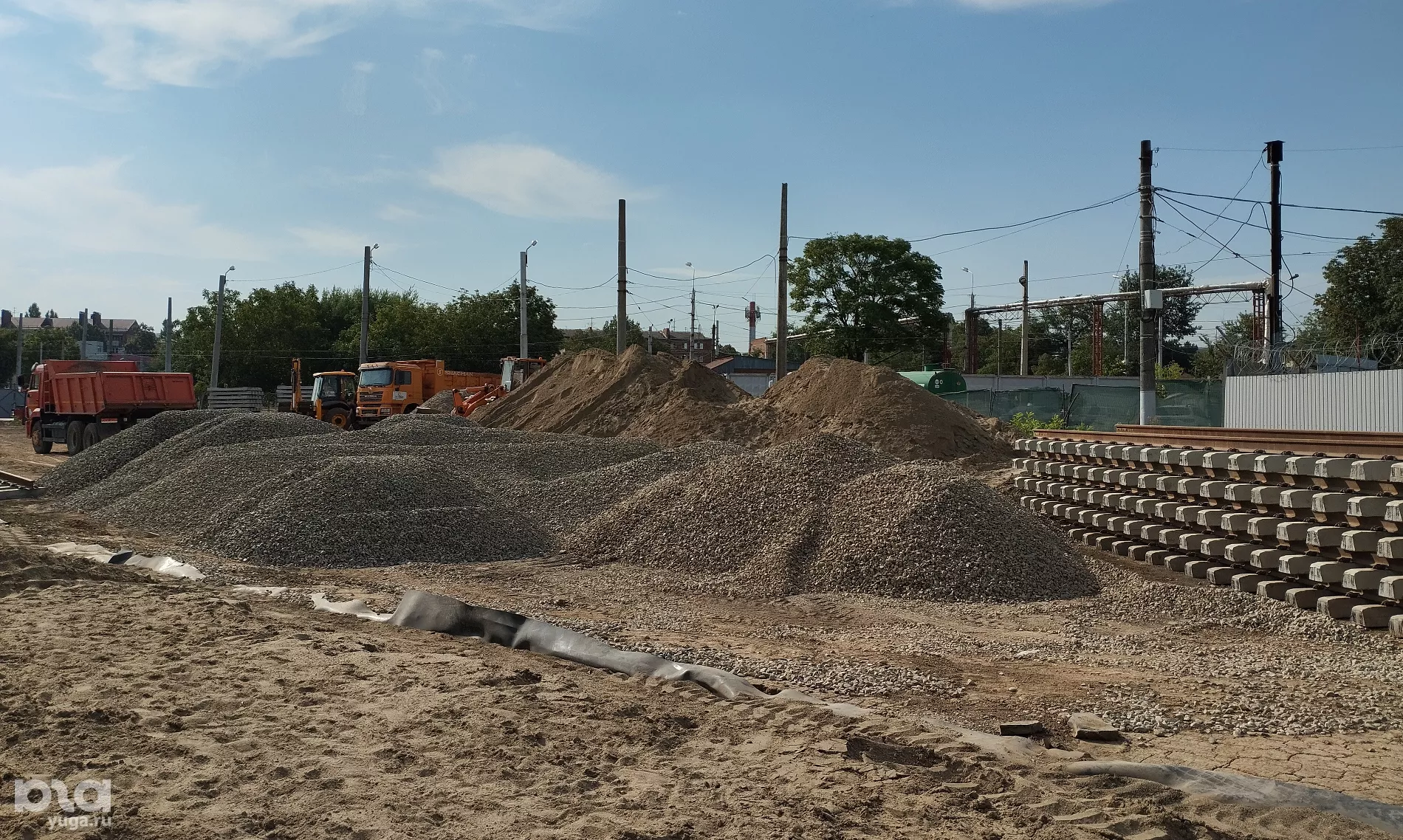 На Западной трамвайной линии Краснодара начали укладывать рельсы и шпалы