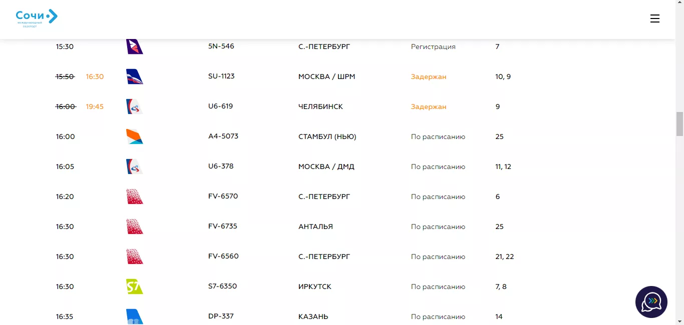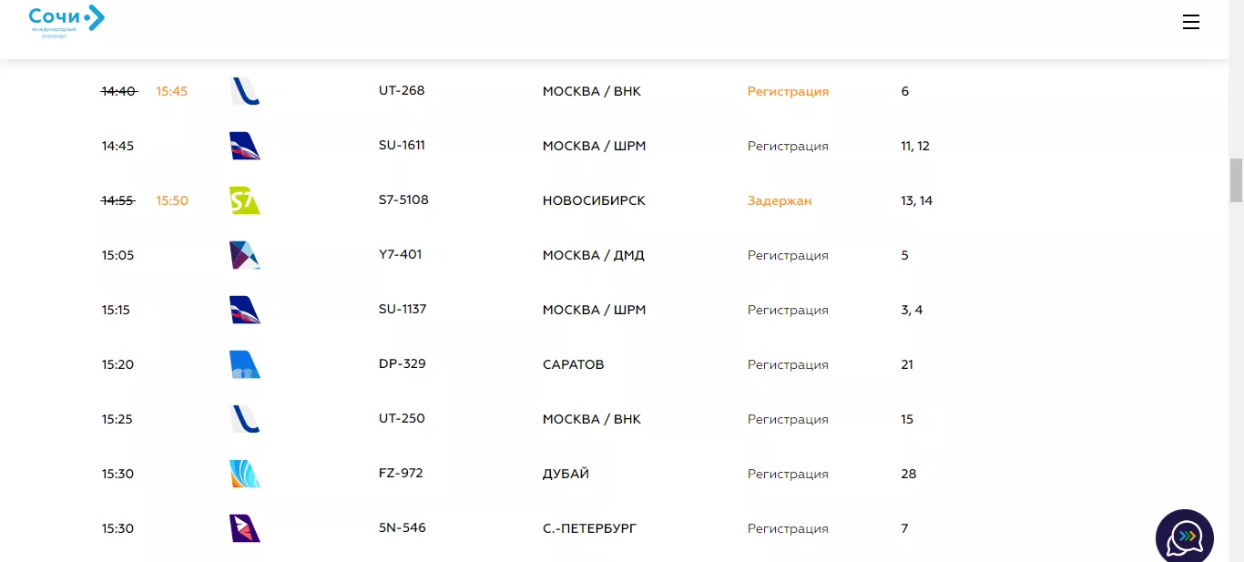 Согласно онлайн-табло аэропорта Сочи, задержки есть и у других авиакомпаний — Nordwind Airlines, «Победа», «Россия», Red Wings, S7 Airlines, Utair.