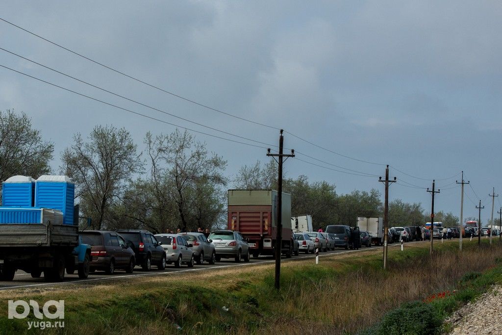 На въезде в Краснодарский край со стороны Крыма машины стоят в пробке больше двух часов