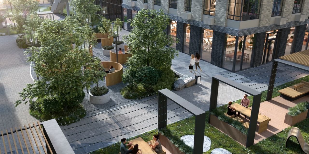 В жилом районе девелопер построит школу на 1550 учеников, три детских сада на 800 мест и 5 зеленых бульваров. В центре комплекса будет гранд-аллея — 300-метровый пешеходный бульвар с детской и спортивной инфраструктурой, кино-фестивальной зоной, арт-объектами и фонтанами.
