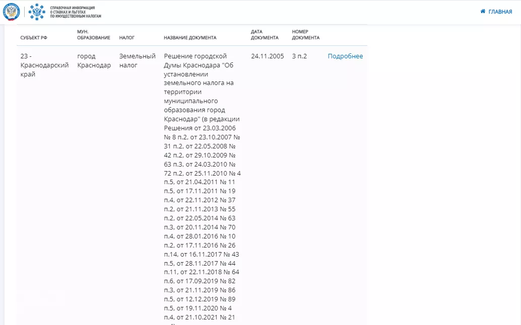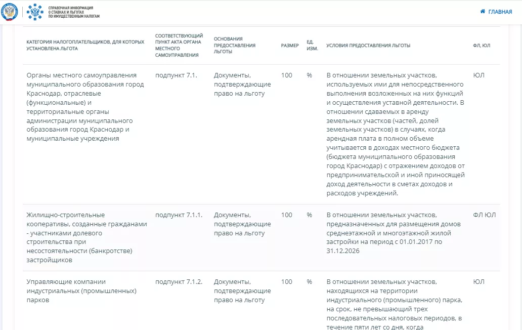 • Часть списка «Местных льгот» © Скриншот с сайта nalog.gov.ru