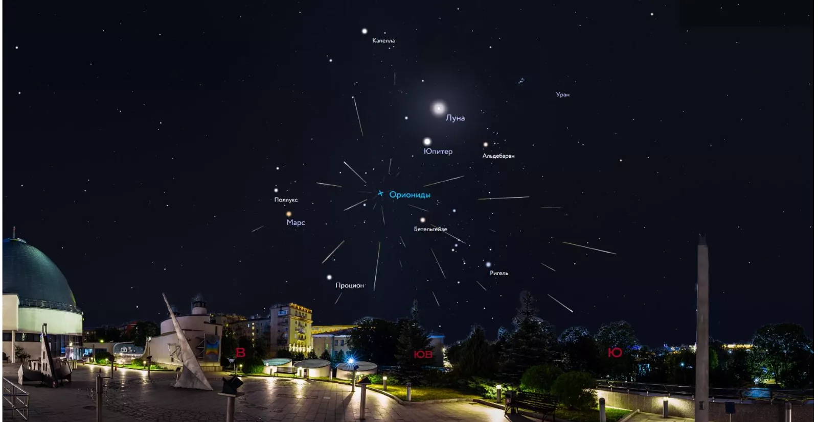 Московский плнетарий сообщил, что в ночь с 20 на 21 октября жители России смогут наблюдать звездопад из созвездия Орион. Астрономы ожидают до 15 метеоров в час. Наблюдения Орионид возможны при ясной погоде с местной полуночи до рассвета над юго-восточным горизонтом.