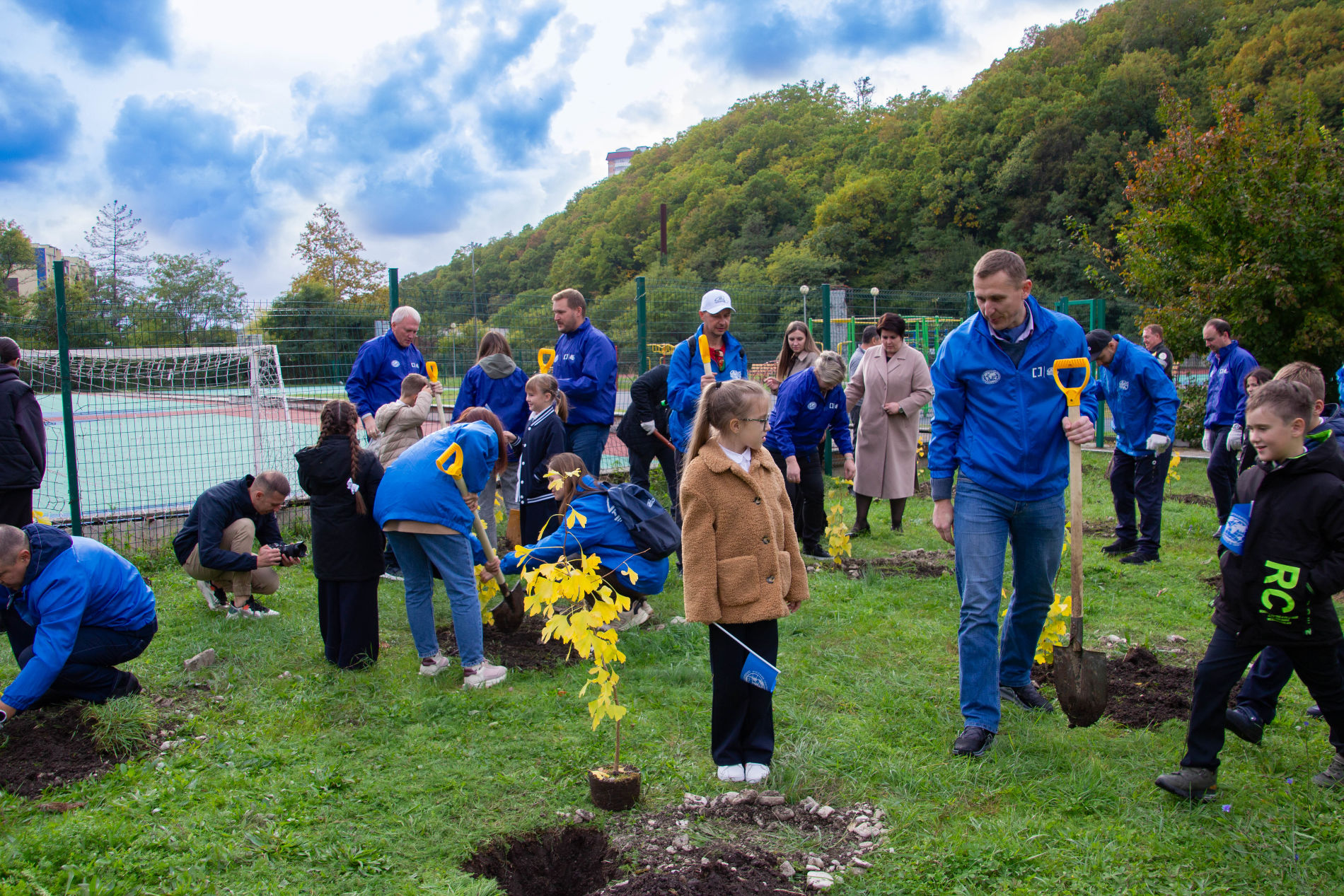 В туапсинской школе появилась аллея из 30 краснокнижных деревьев гинкго билоба