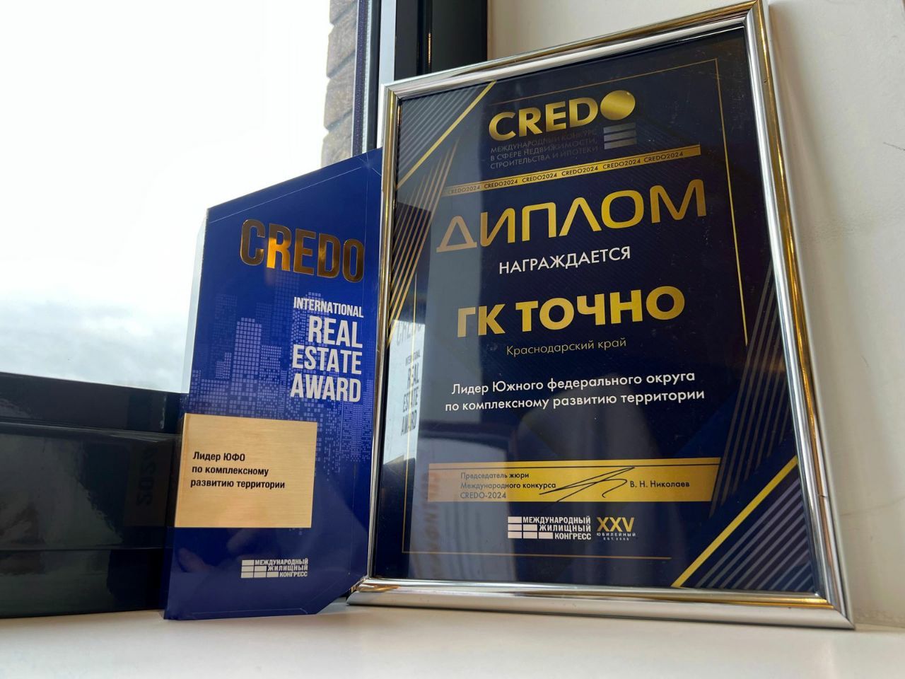 1 ноября пресс-служба ГК ТОЧНО сообщила, что на 25-м юбилейном международном жилищном конгрессе в Москве вклад застройщика отметили в номинации «Лидер Южного федерального округа по комплексному развитию территорий».