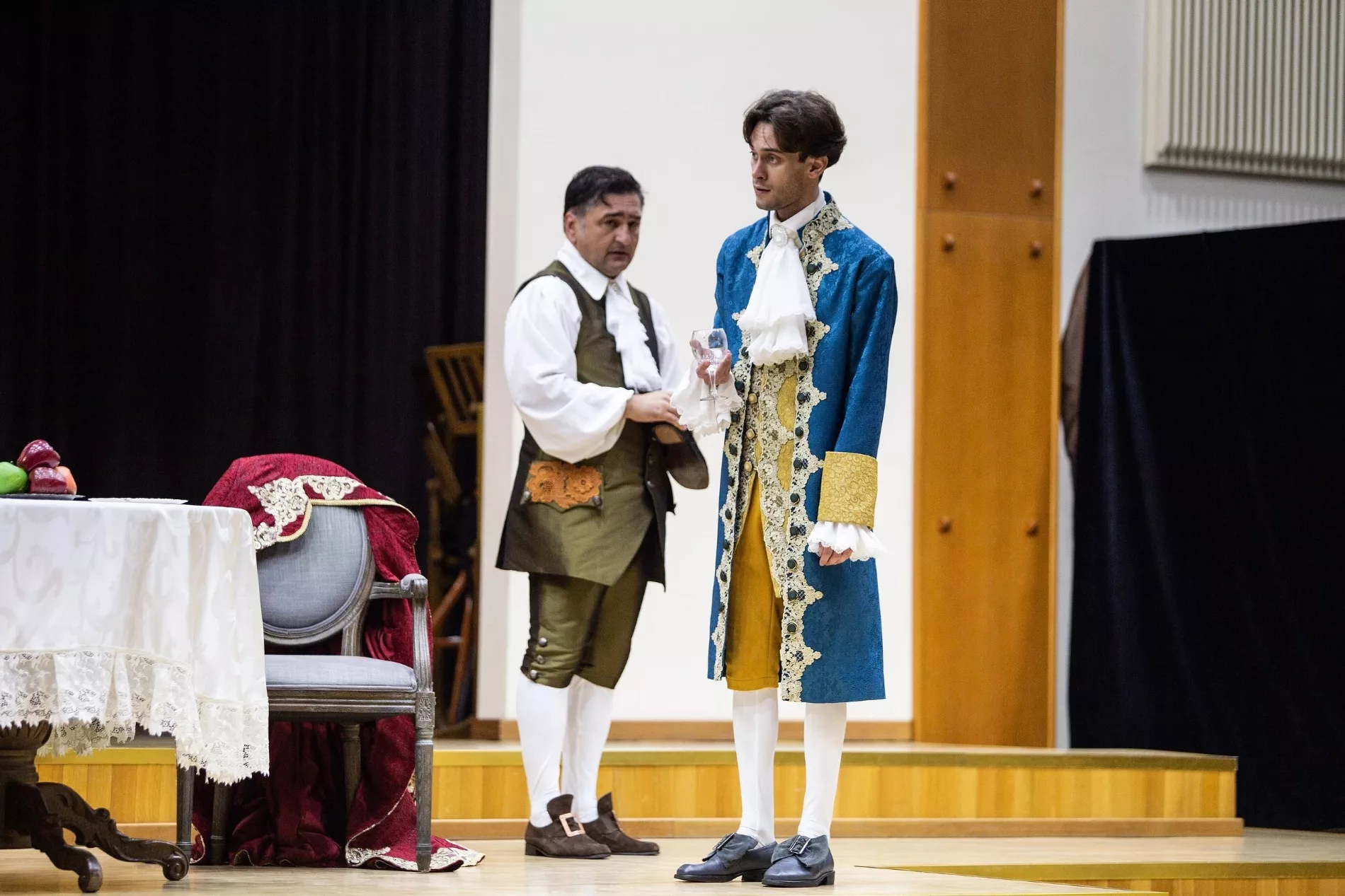 «Мой многолетний соавтор сценограф Ирина Сид предложила в декорациях пойти по пути стилизации, а костюмы создать более фантазийные, уходя от прямого исторического атрибутирования в пользу яркой, подчеркнутой театральности. Это же направление подчёркивает музыка», — рассказал Юга.ру режиссер Павел Пронин.