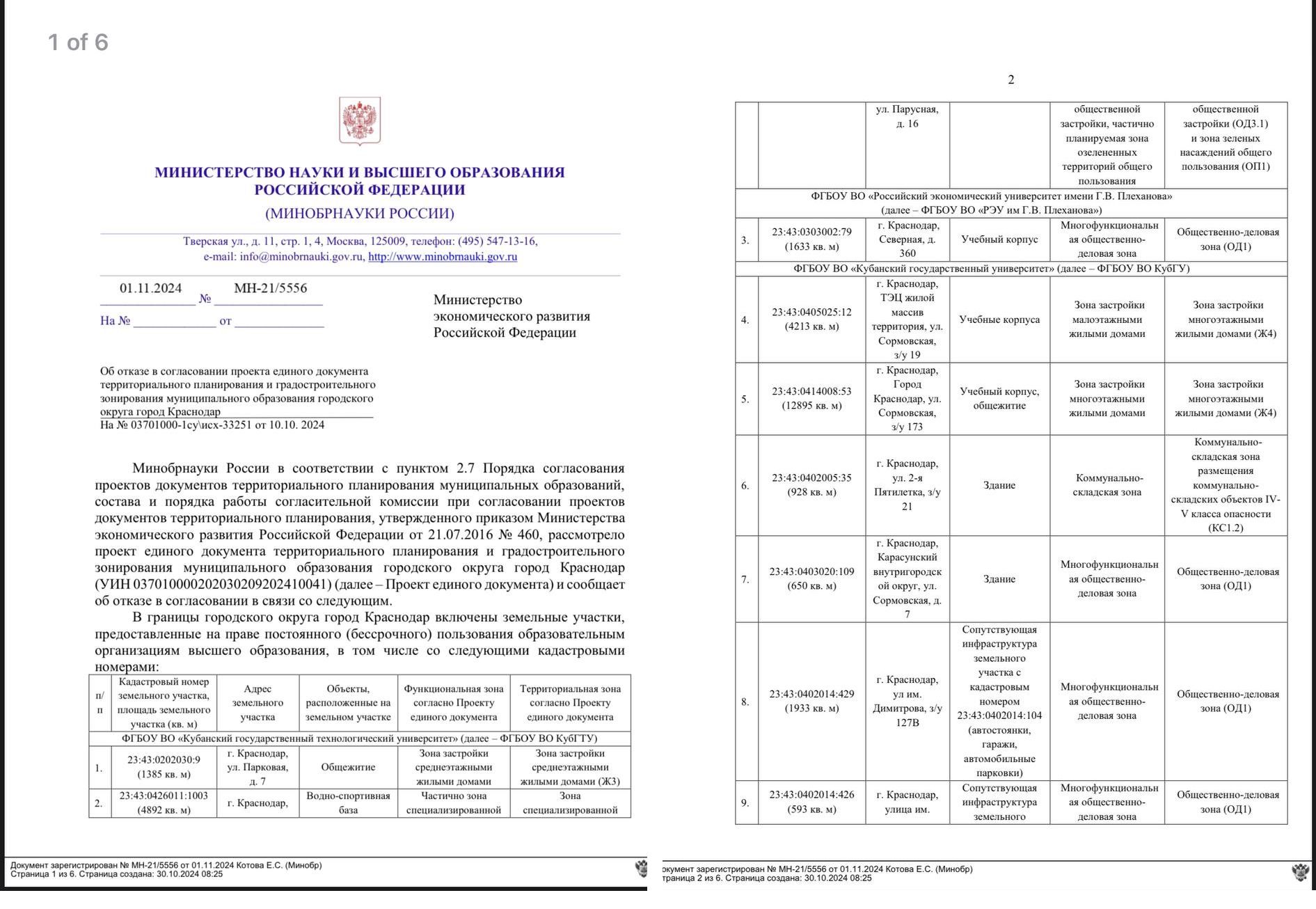 5 ноября краснодарский депутат Александр Сафронов разместил в своем телеграм-канале фотографии документа, подписанного врио директора департамента управления имуществом Минобрнауки Евой-Кариной Ахмеджановой.