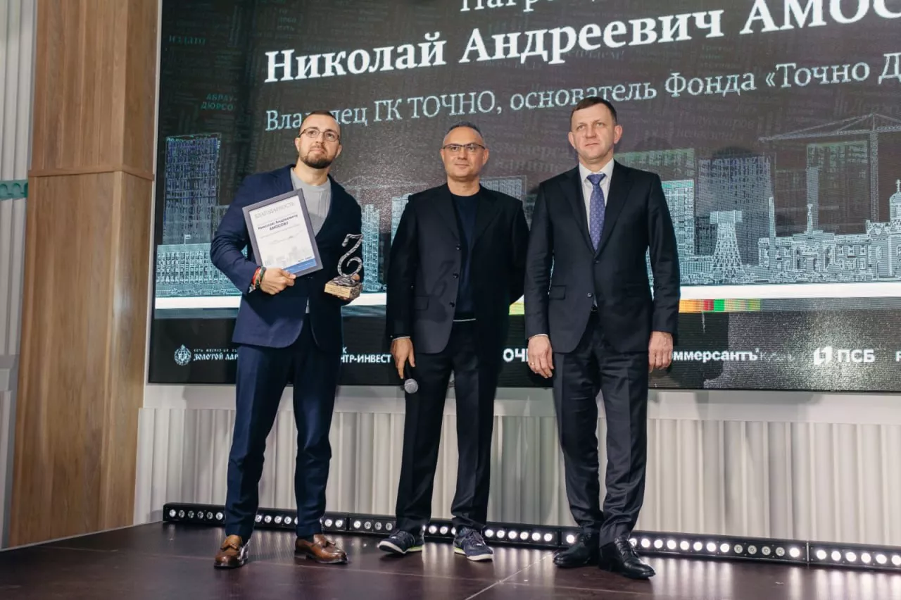 Мэр Краснодара Евгений Наумов вручил награду «За вклад в развитие города Краснодара» Николаю Амосову — владельцу ГК ТОЧНО, основателю благотворительного фонда ТОЧНО ДОБРО