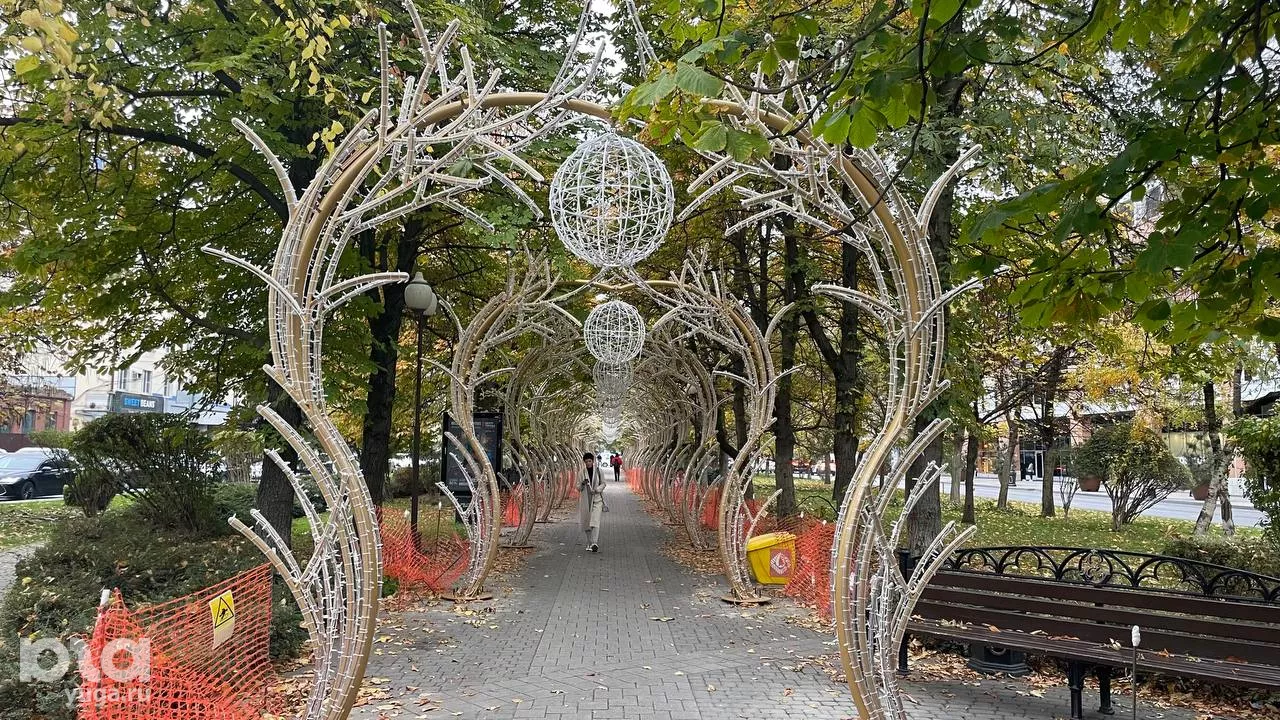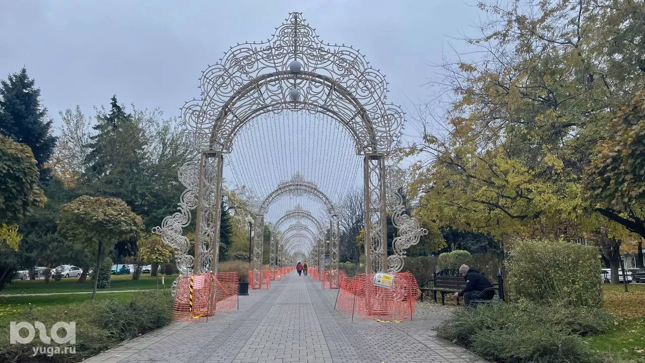 В Краснодаре на улице Красной монтируют новогоднюю елку, светящиеся арки и другие объекты. Показываем, как они выглядят и где находятся