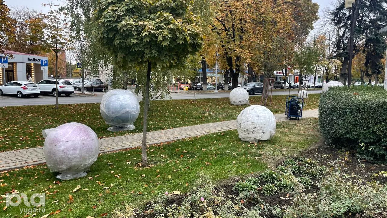 По Красной от Свято-Екатерининского фонтана до Хакурате вдоль дорожек появились шары, напоминающие композицию «Парад планет» в парке «Краснодар».