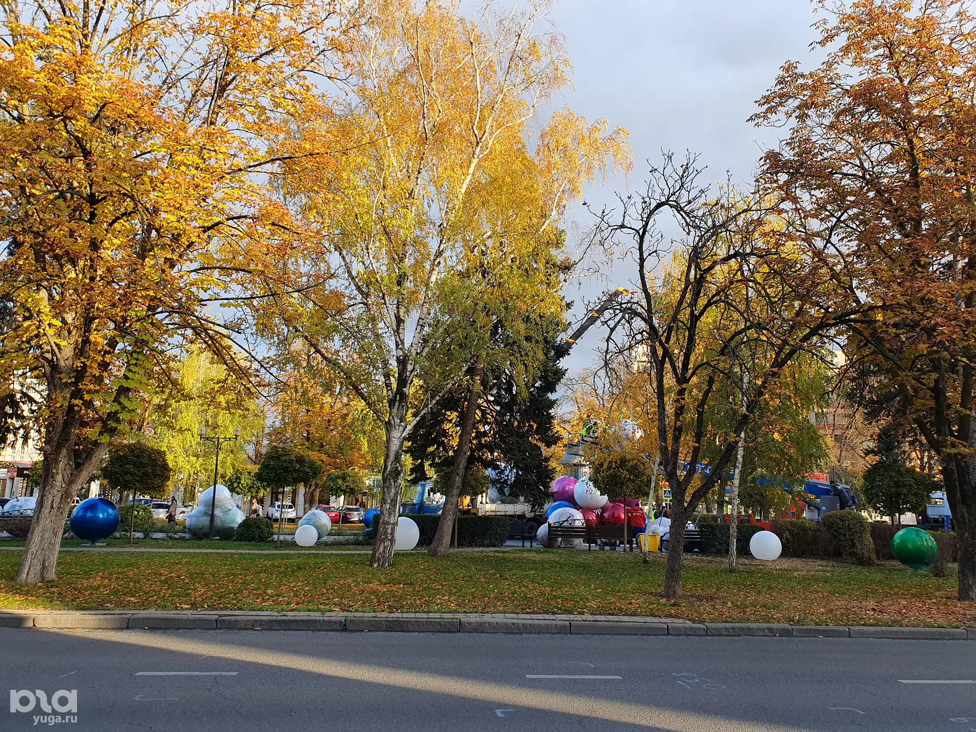 Первые световые конструкции и «снежинки» начали устанавливать в конце октября, затем над памятником Шурику и Лидочке возвели первую в Краснодаре новогоднюю елку. Полностью работы планируют завершить к началу декабря.