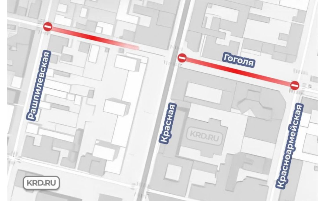 Администрация Краснодара сообщила, что в понедельник, 25 ноября, будет ограничено движение транспорта на участке улицы Гоголя. Проезд будет закрыт с 6:00 до 16:00 от улицы Красноармейской до Рашпилевской.