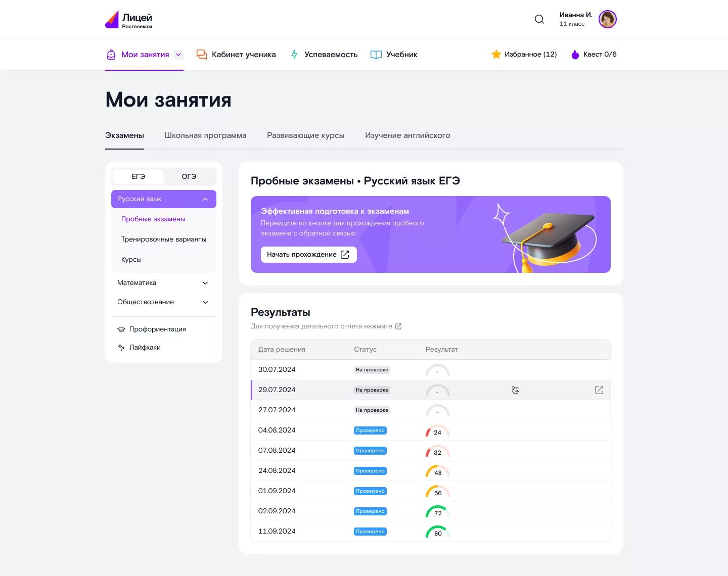 Пользователи подписки «Выпускник» на образовательной платформе «Ростелеком. Лицей» могут получить реальную обратную связь от членов предметных комиссий ЕГЭ по результатам домашнего тестирования. Это поможет выпускникам более детально и качественно подготовиться к ЕГЭ.